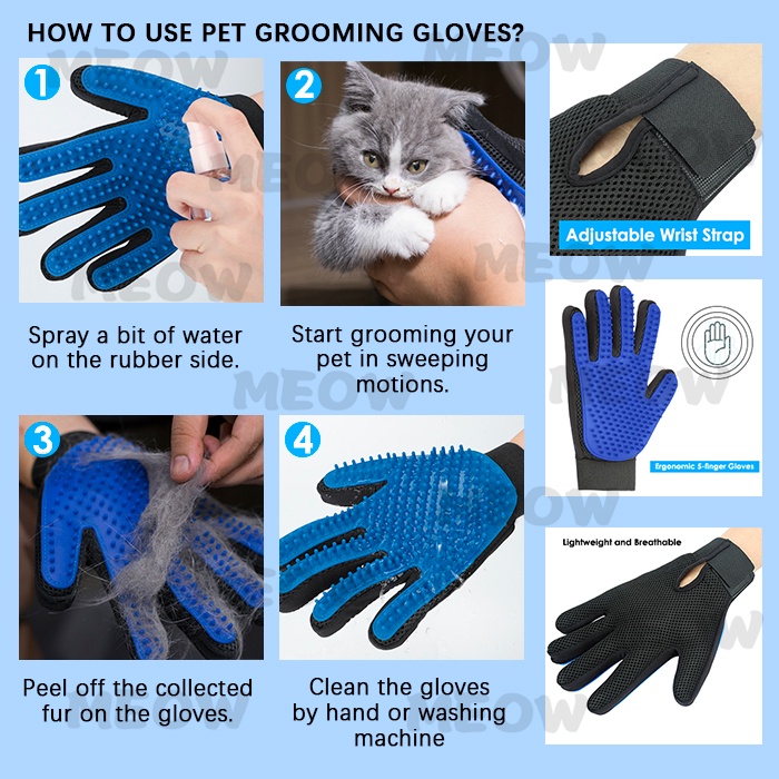 MEOW Pet Dog Cat Grooming Brush Glove Pet Hair Deshedding Comb Brush Kitten Puppy Scalp Massage Brush Glove HairRemoval