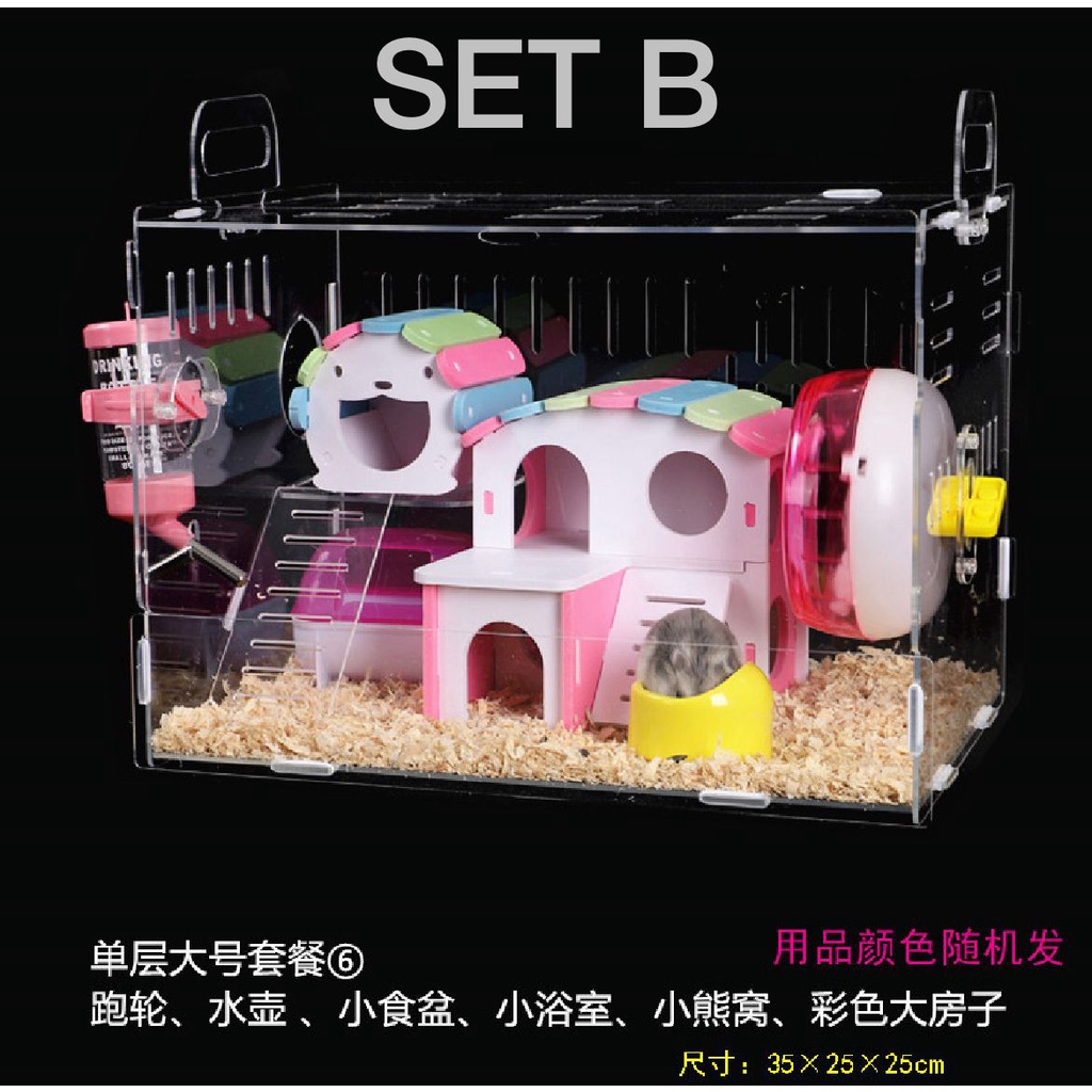 Pet Hamster Cage Transparent Acrylic Ready Stock Acrylic pull out design Hamster cage Transparent Cage pull out design
