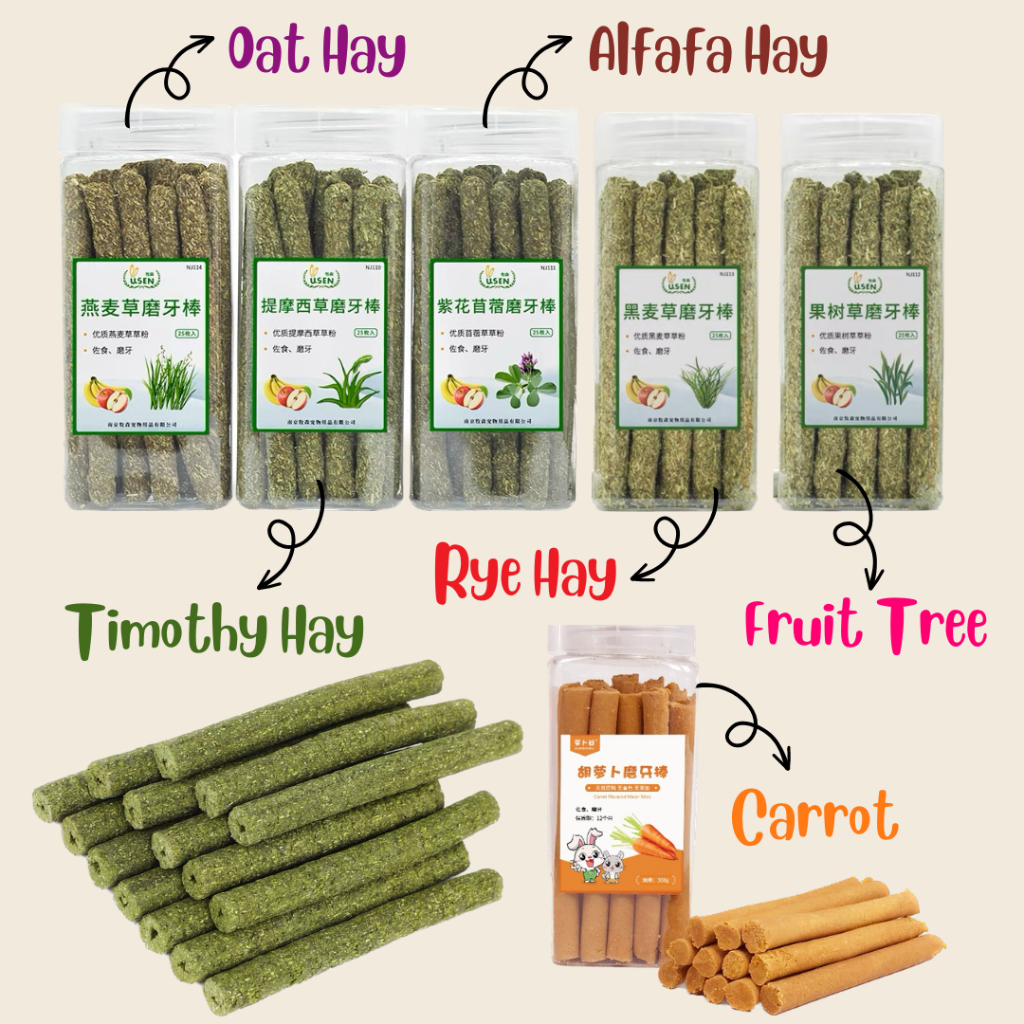 Pet Molar Hay Stick molar grass stick hamster rabbit chew chinchilla guinea pig food snacks timothy hay alfalfa carrot