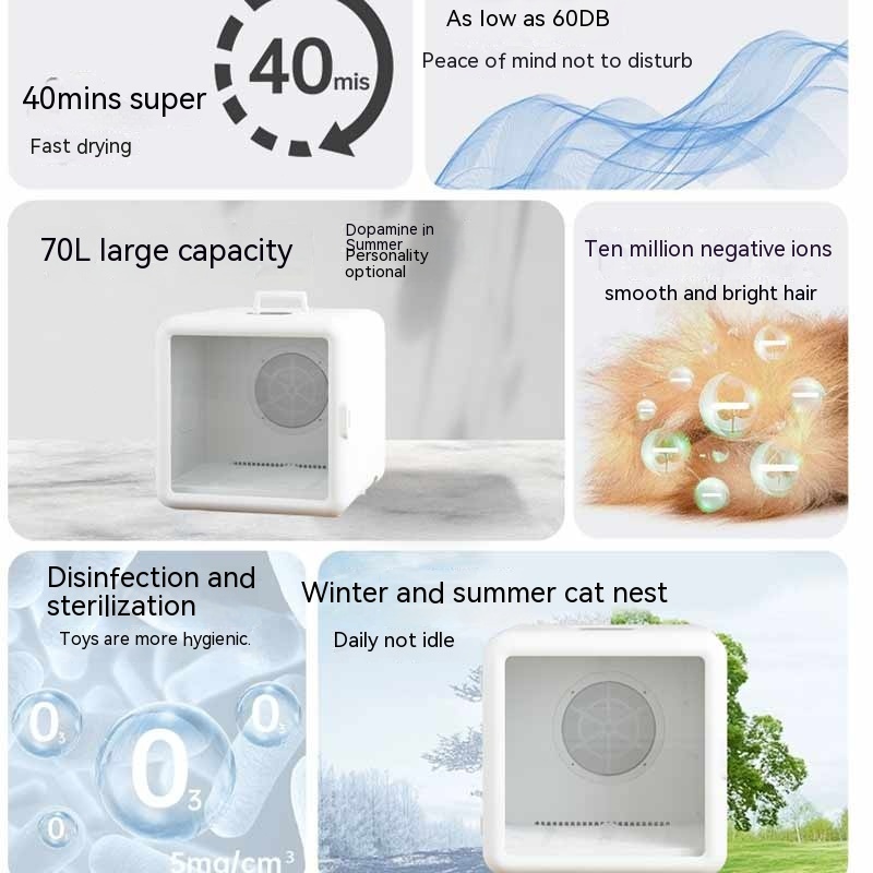 Pet drying box cat and dog drying box smart pet hair dryer ultraviolet drying box house quiet drying box