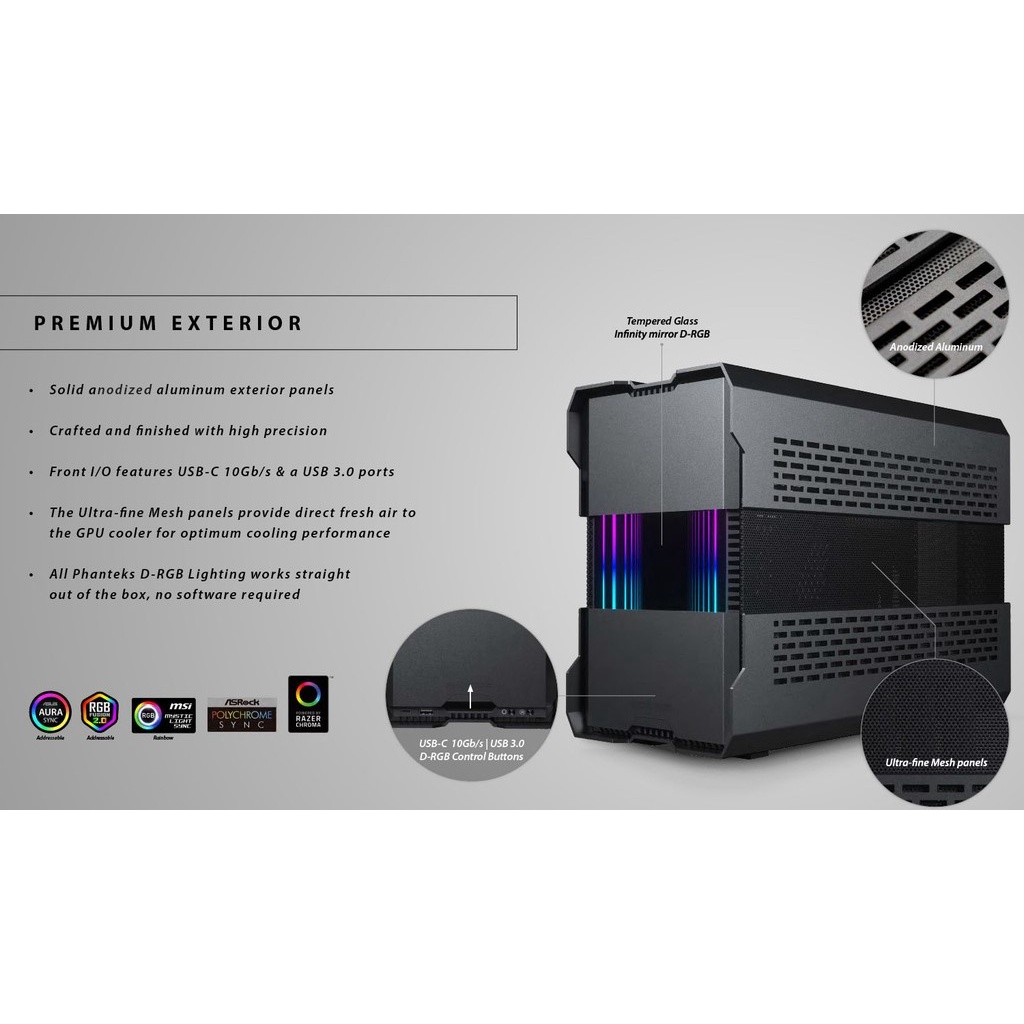 Phanteks EVOLV SHIFT XT DRGB Expandable Infinity Mirror iTX Mini Desktop PC Case - Galaxy Silver & Satin Black