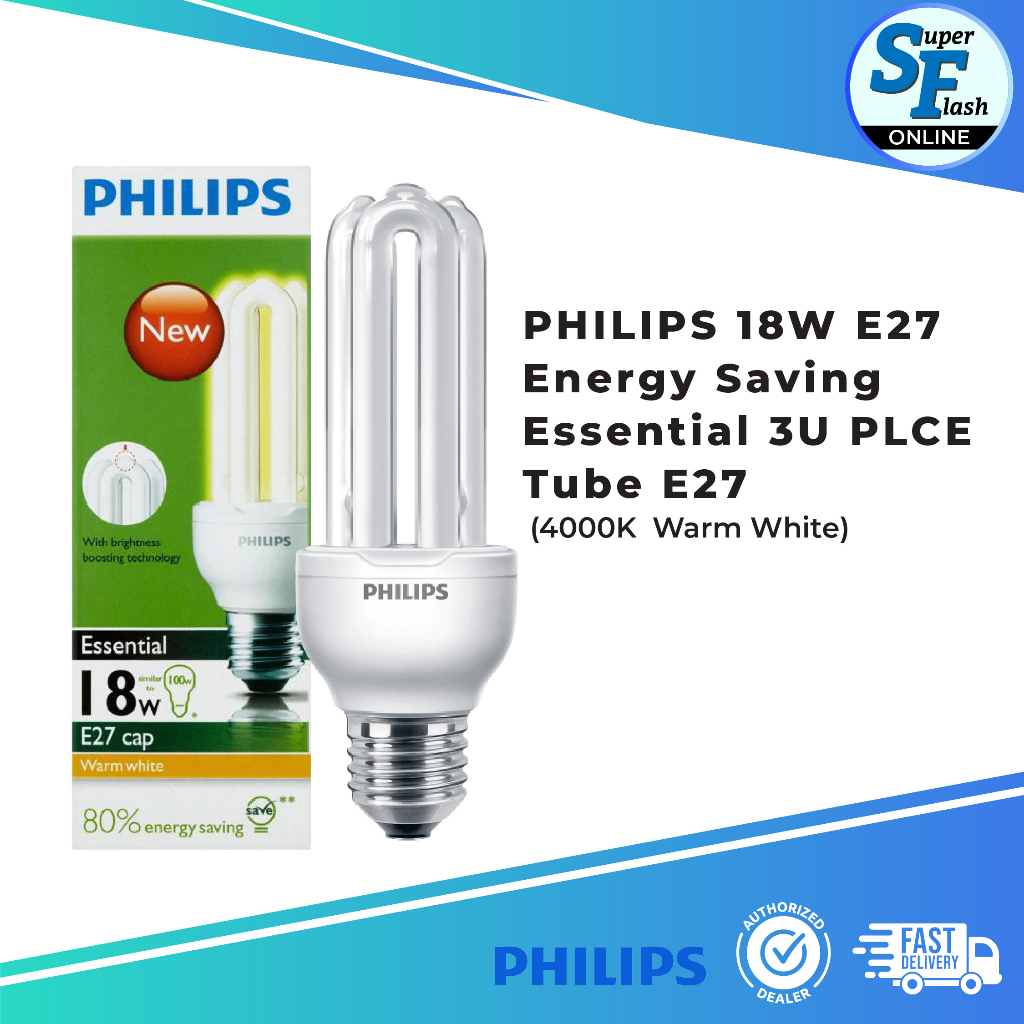 Philips 18W Essential Energy Saving 3U PLCE E27 Bulb (Warm White & Cool Daylight)