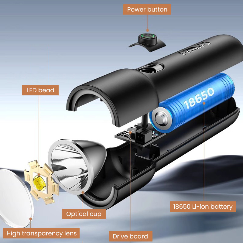 Philips 2024 New EDC Portable Flashlight Rechargeable LED Flashlights for Defensa Personal Self Defense Camping Hiking