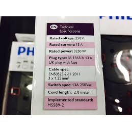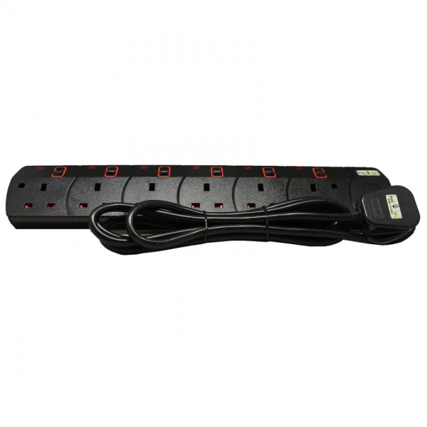 Philips 6 Gang Way with Individual Switch Power Extension Plug Sockets Black (2m cable) (Heavy Duty)