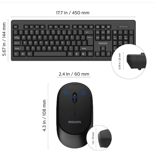 Philips C324 Wireless Combo Keyboard Silent Mouse Set