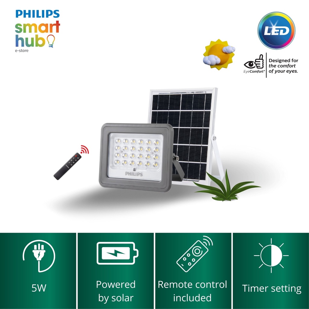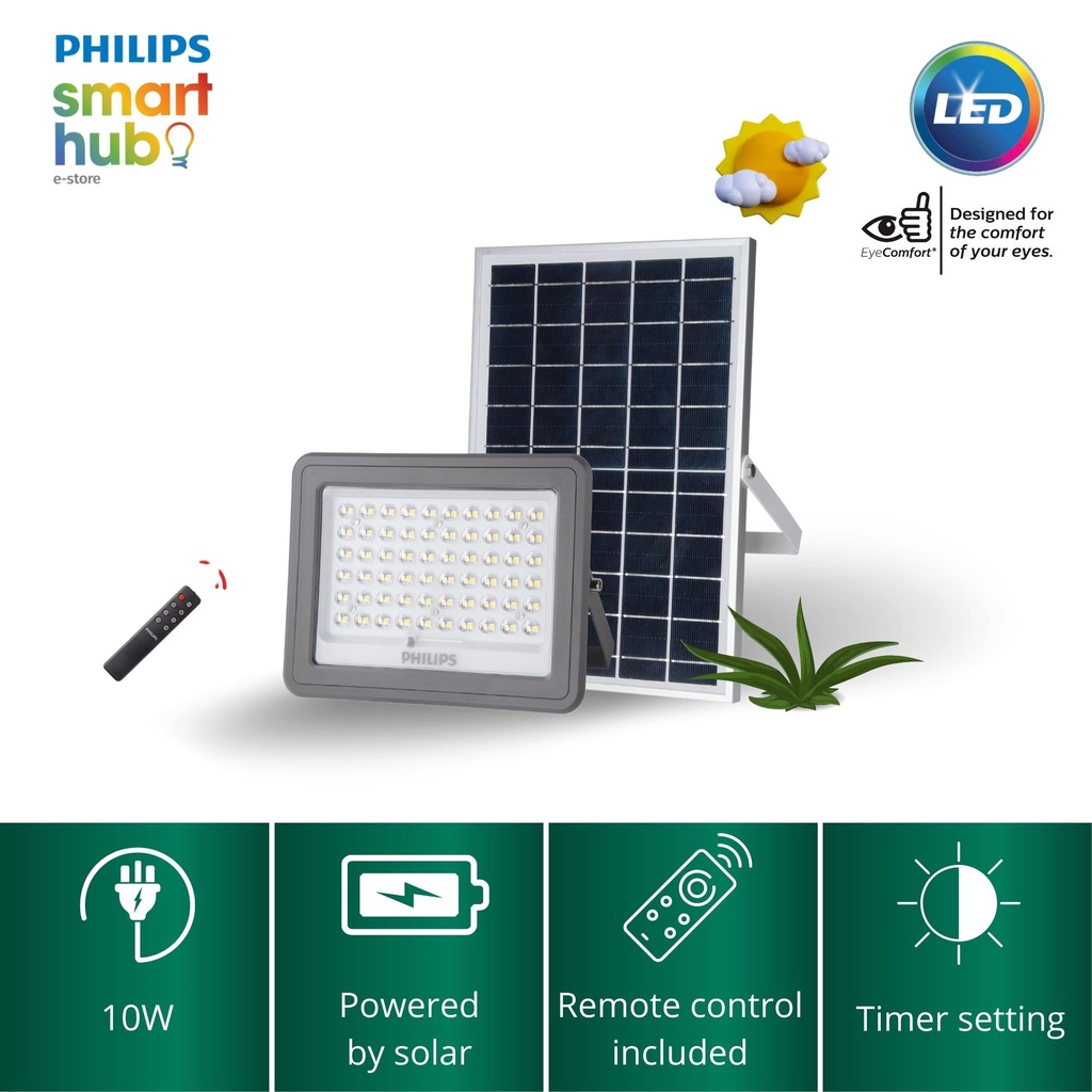 Philips Deco Solar Flood Light 6500K 5W/ 7W/ 10W (With Solar Panel + Remote)