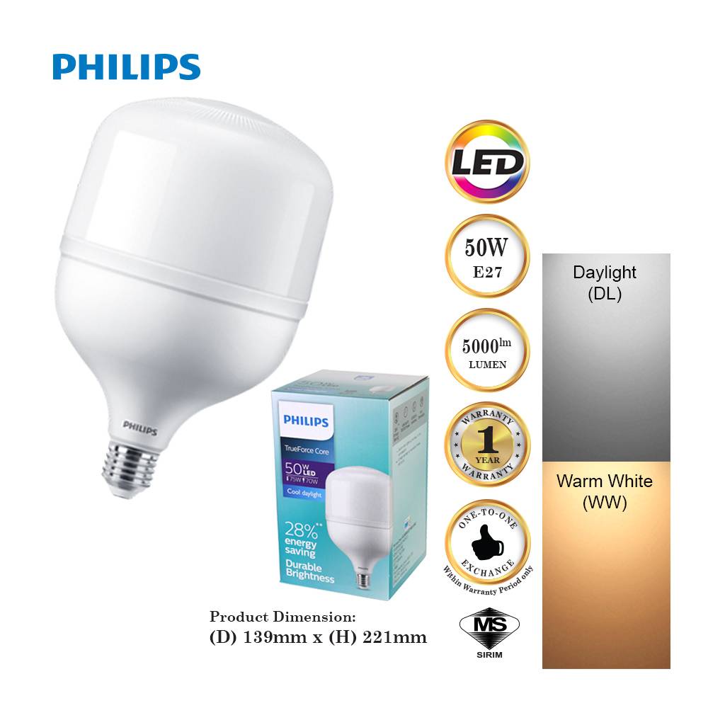 Philips E27 TrueForce Core 30W / 50W LED light bulb E27 LED lightbulb - Daylight 6500K & Warm White 3000K