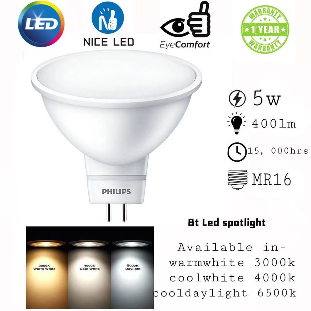 Philips Essential LED spot light bulb 5W MR16 (WarmWhite)