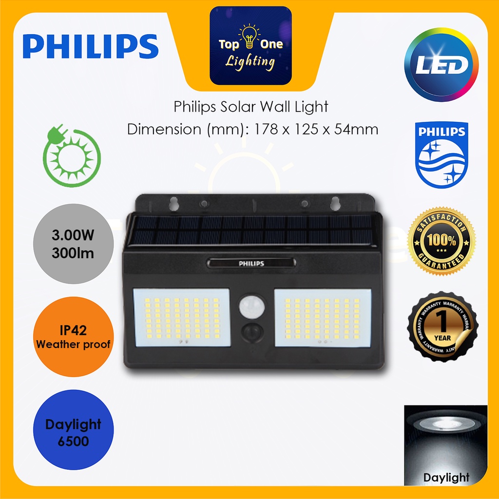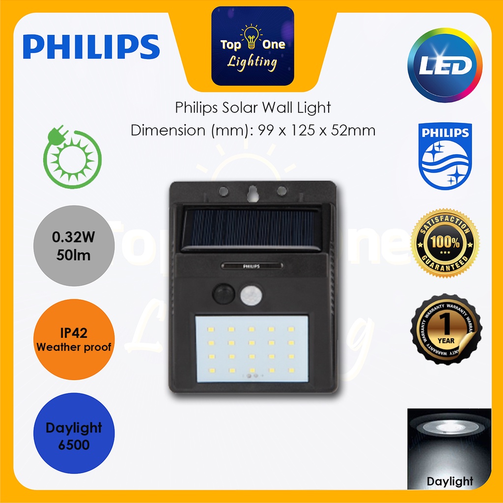 Philips Essential SmartBright Solar Wall Light 6500K (Inbuilt Solar Panels) (0.32W/0.65W/3W)