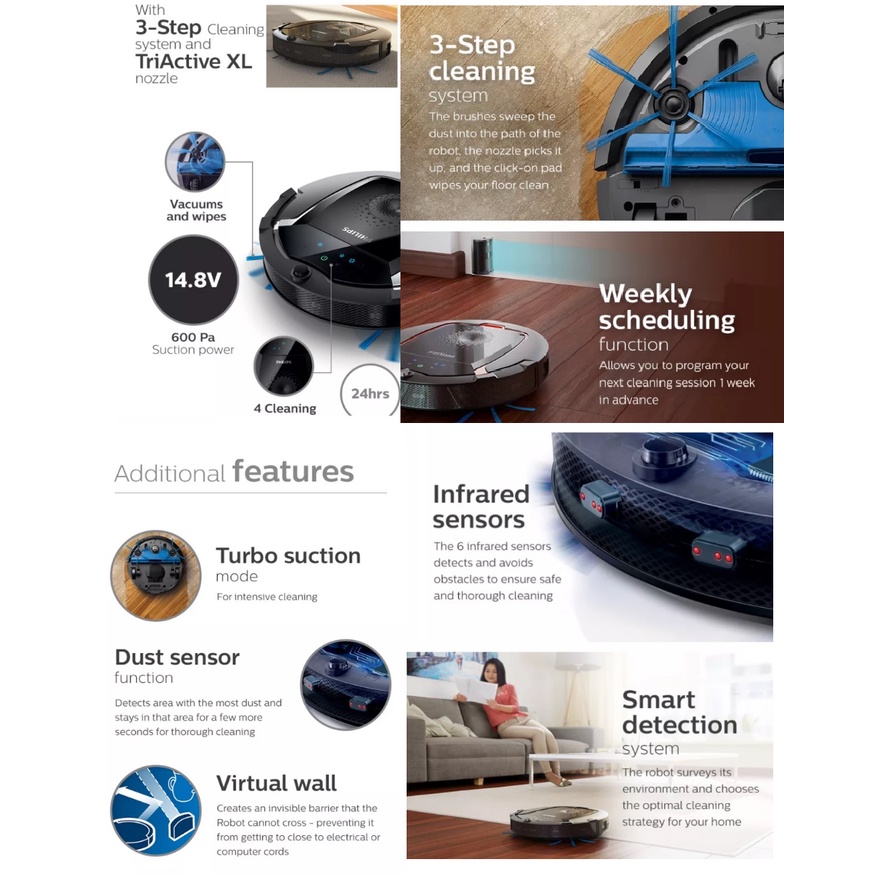 Philips FC8822 SmartPro Active Robot vacuum cleaner with dry mop