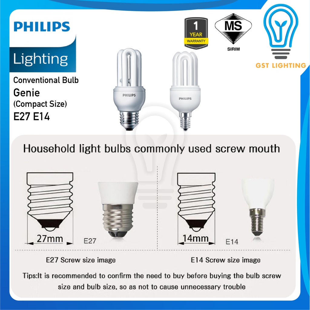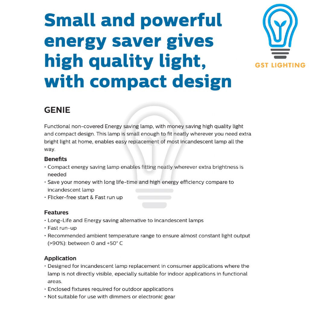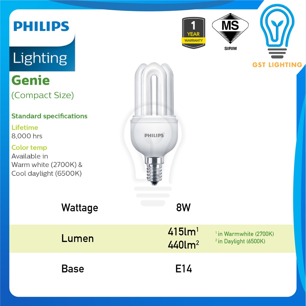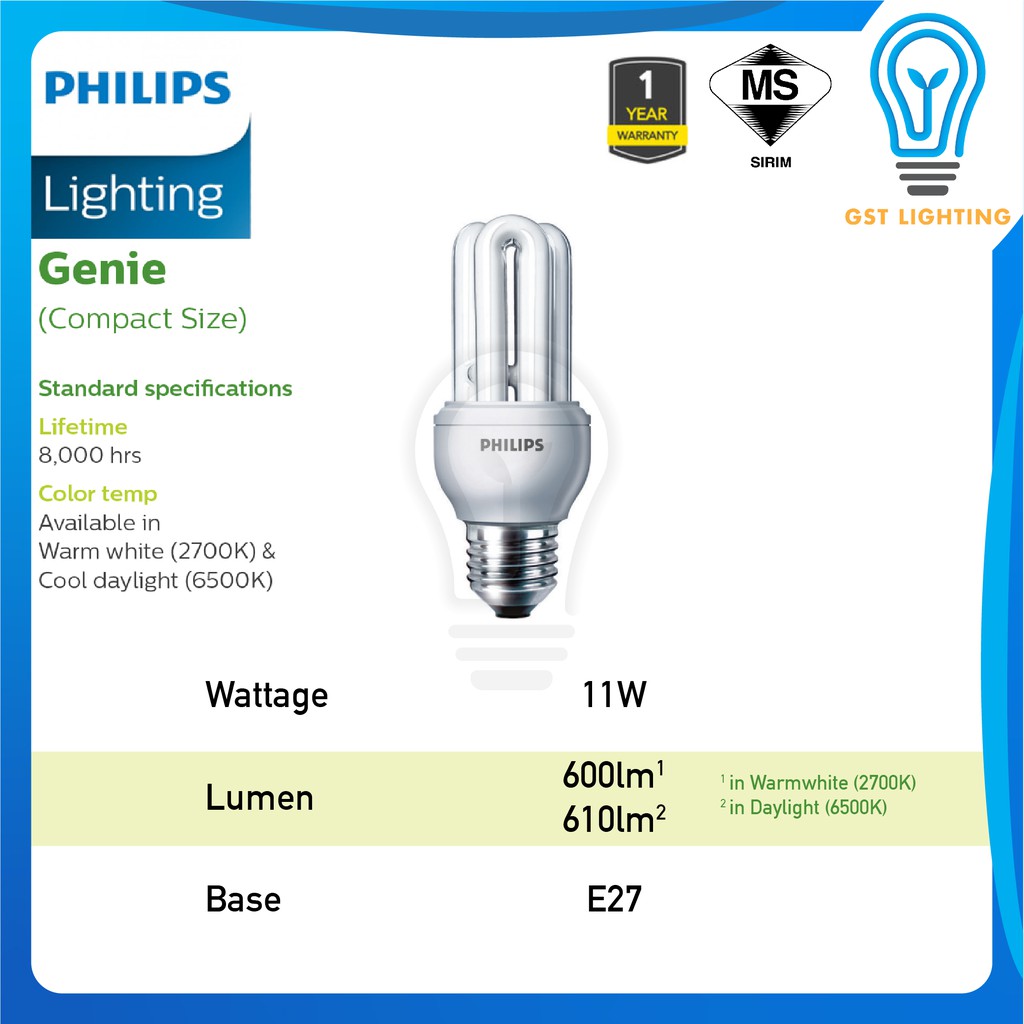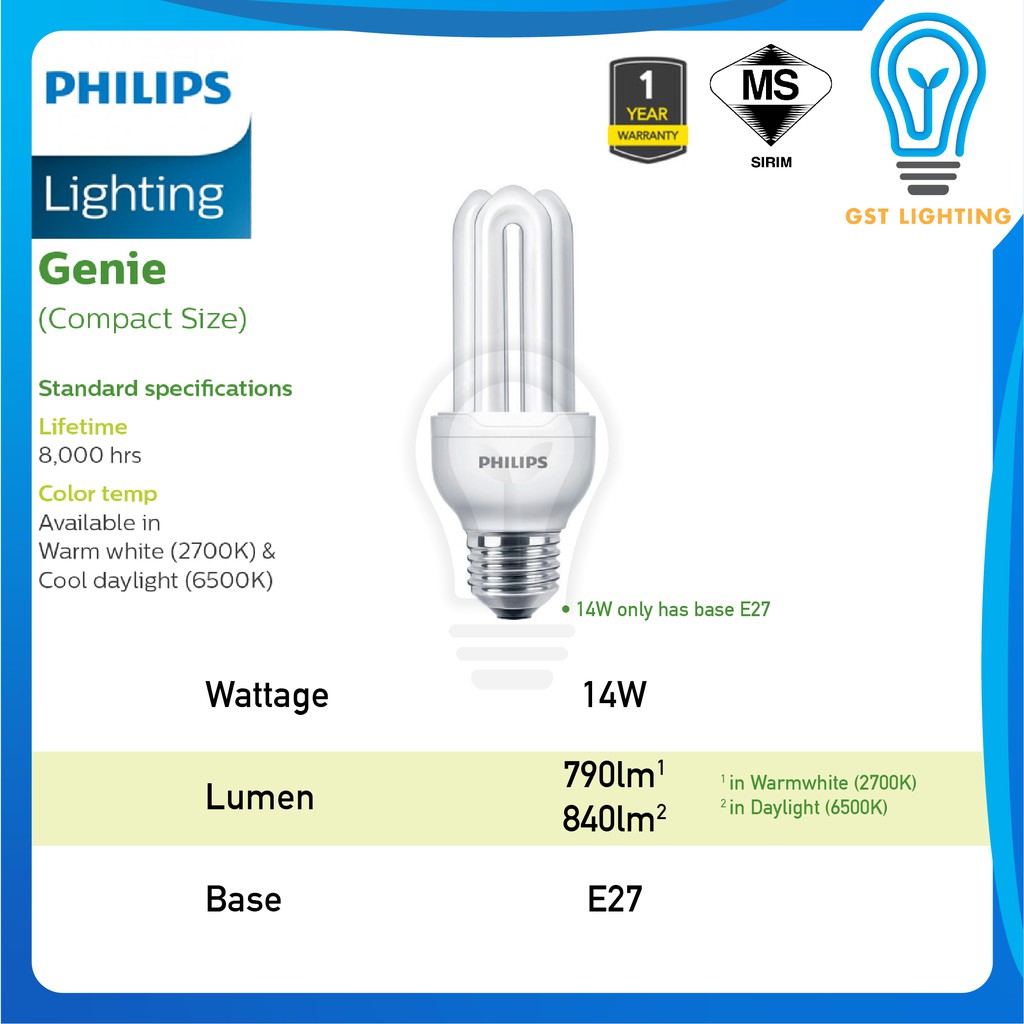 Philips Genie/ Essential PLCE Energy Saver Light Bulb E27 / E14 | 8W / 11W / 18W | Warmwhite 2700K / Cool Daylight 6500K