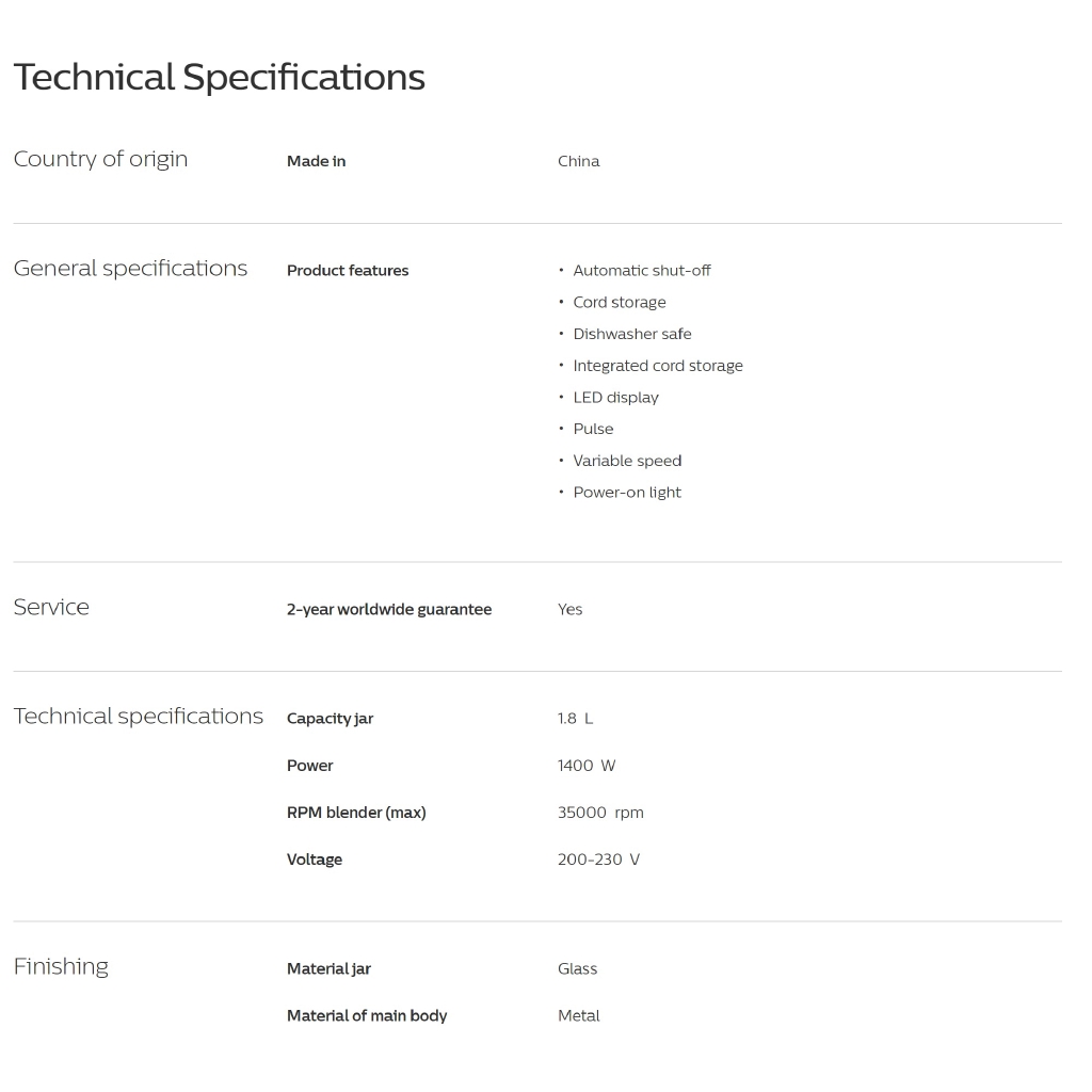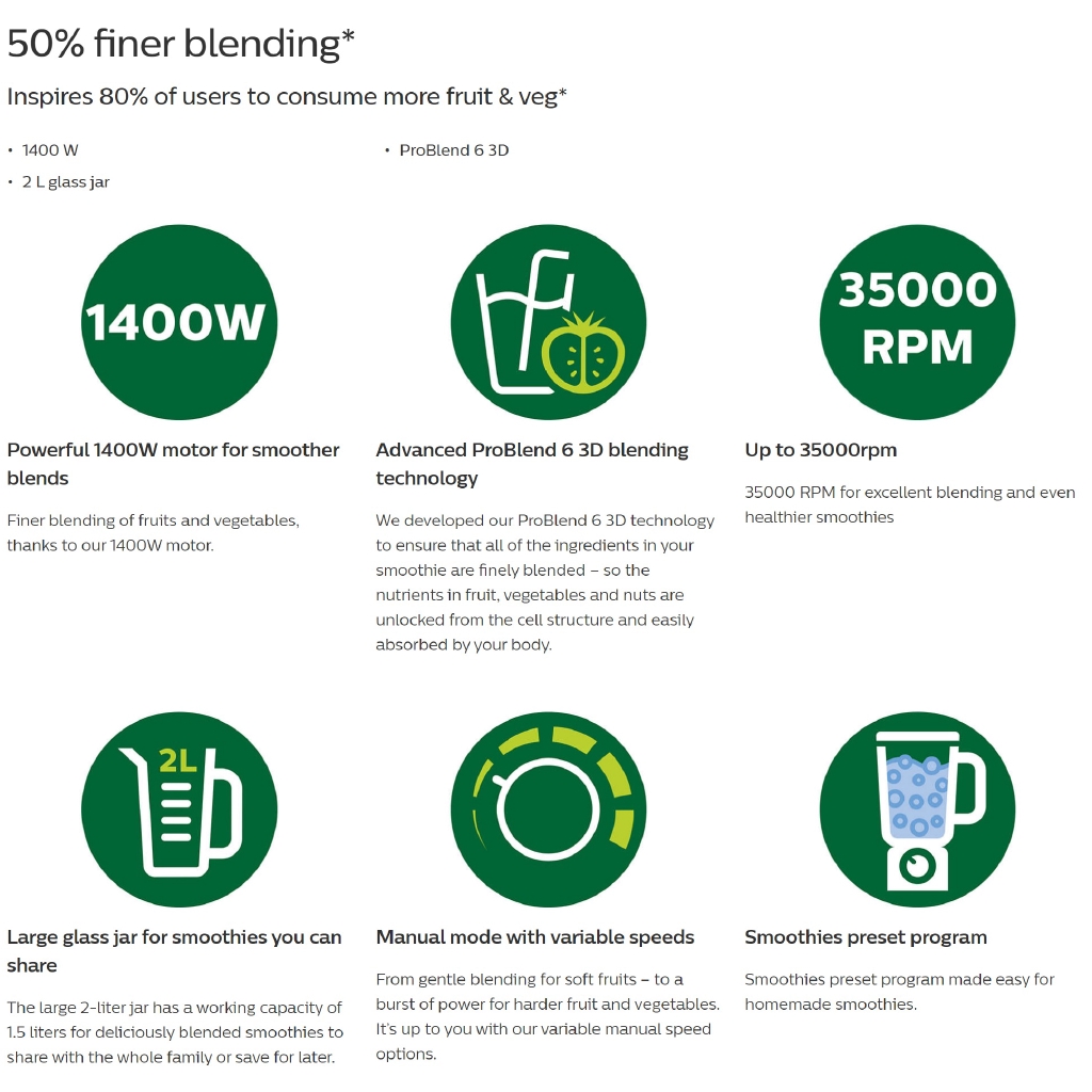 Philips HR3652 heavy duty blender high speed blender ice crush blender 1400W ProBlend 6 3D Technology