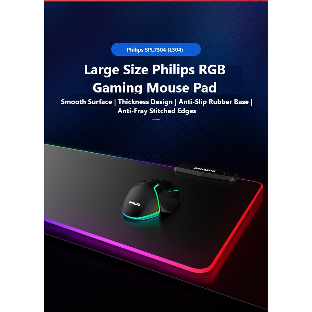 Philips L204 SPL7204 SPL 7204 Wired RGB Gaming Mouse Pad Multi Color Breathing Lamp Non Slip Rubber Base Mouse Pad