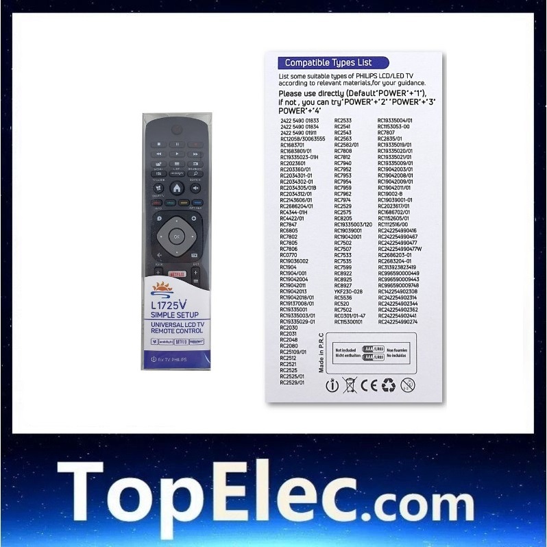 Philips LCD/LED TV Remote Control Replacement - ( L1725 / L1285V ) (L2009 / L2009V)