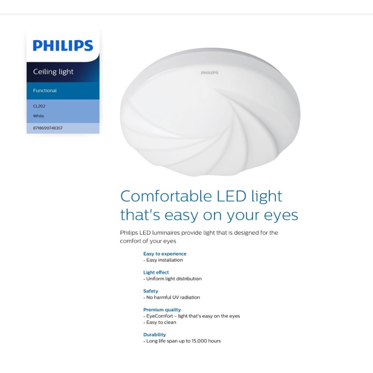 Philips LED Ceiling Light 10W (10 inch) / 17W ( 12 inch ) / 20W (16 inch) CL202 6500K Cool Daylight