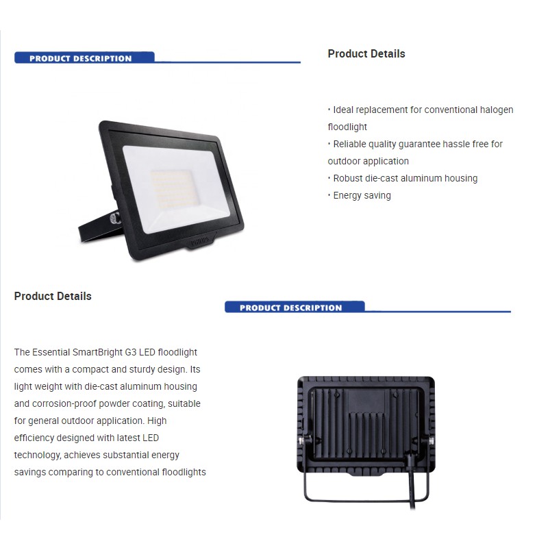 Philips LED FloodLight Essential SmartBright 10W,20W,30W,50W