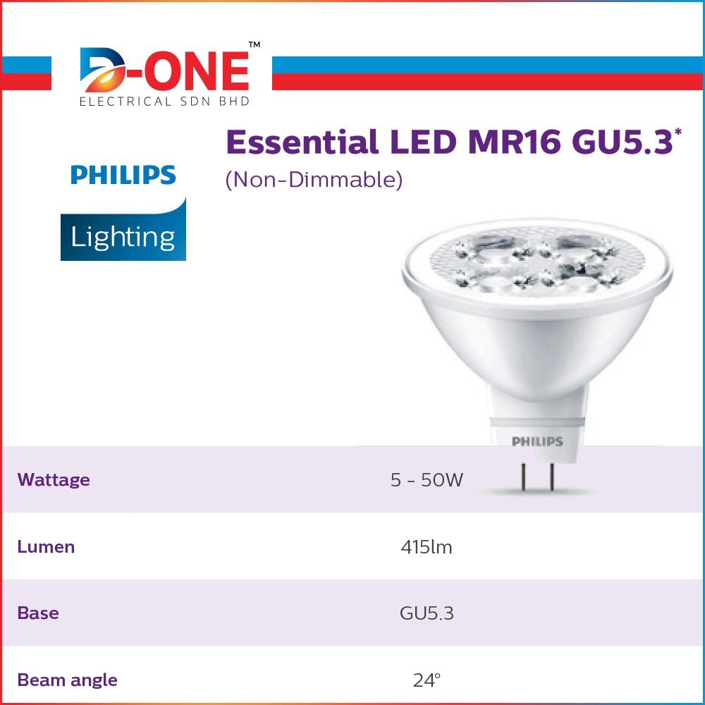 Philips LED Spots - Essential LED MR16 GU5.3 LED BULB* (Non-Dimmable)