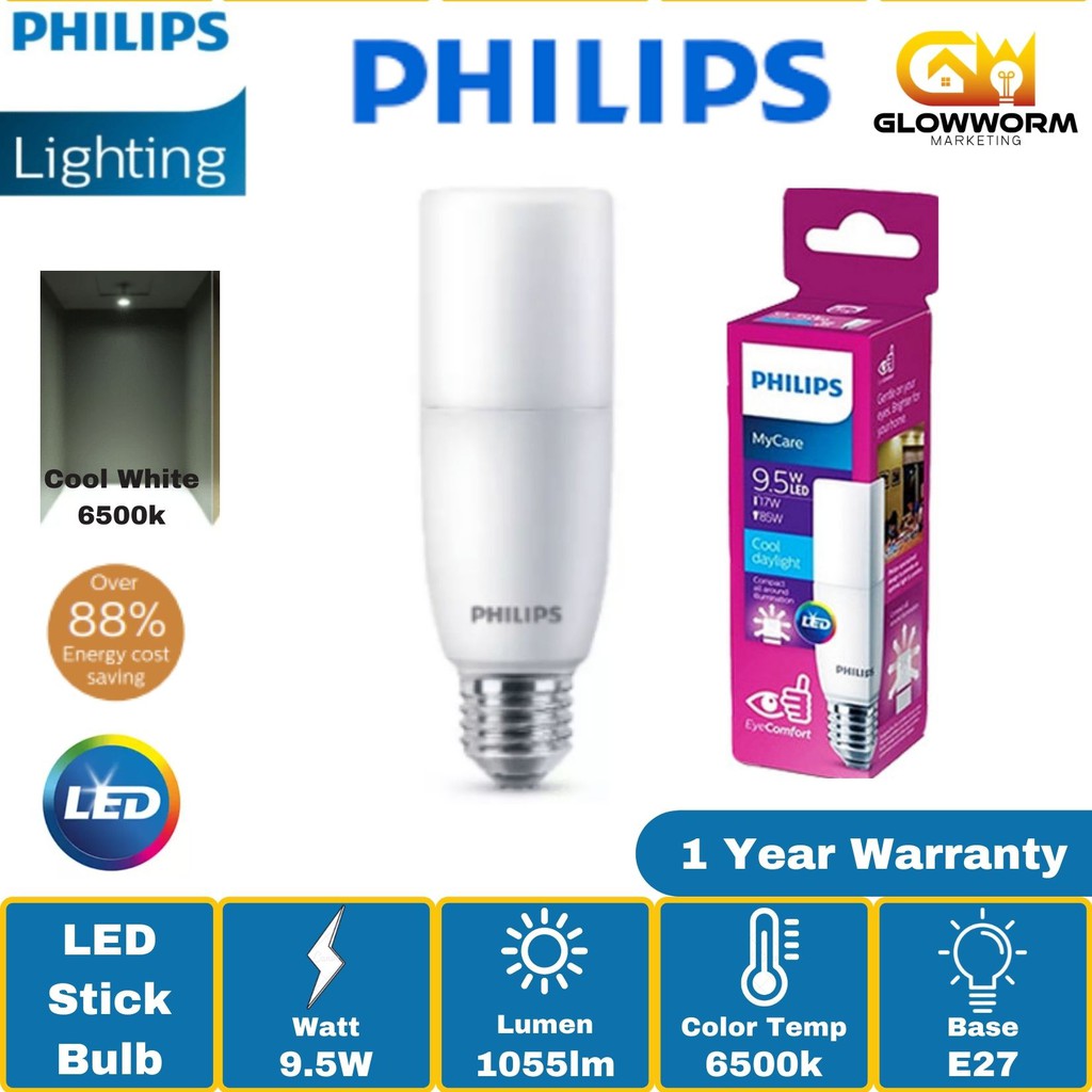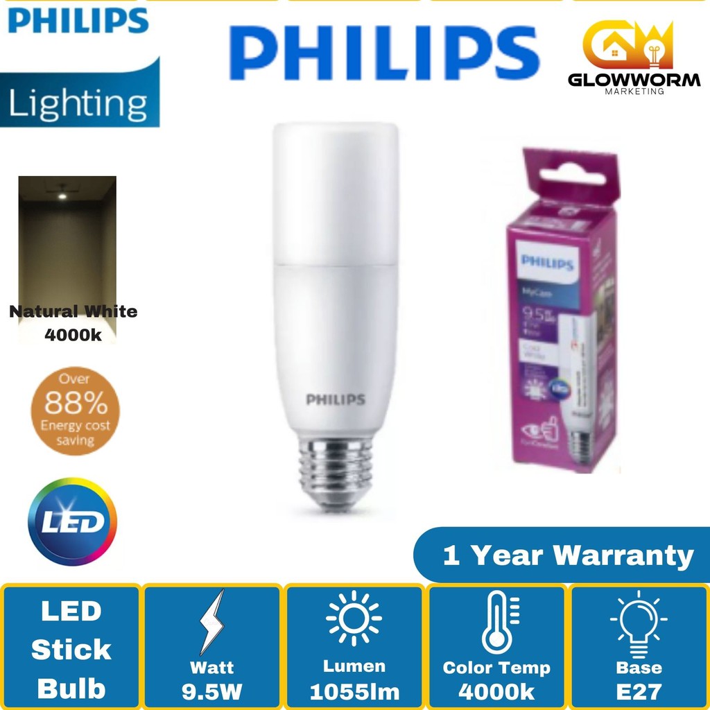 Philips LED Stick Bulb E27 9.5W (3000K/4000K/6500K)