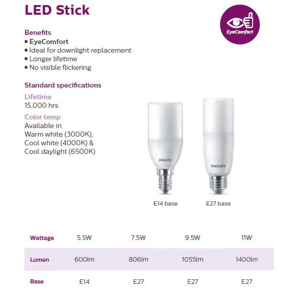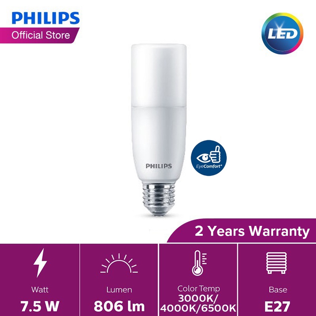 Philips LED Stick E27 Bulb 7.5/9.5/9W (3000K/4000K/6500K)