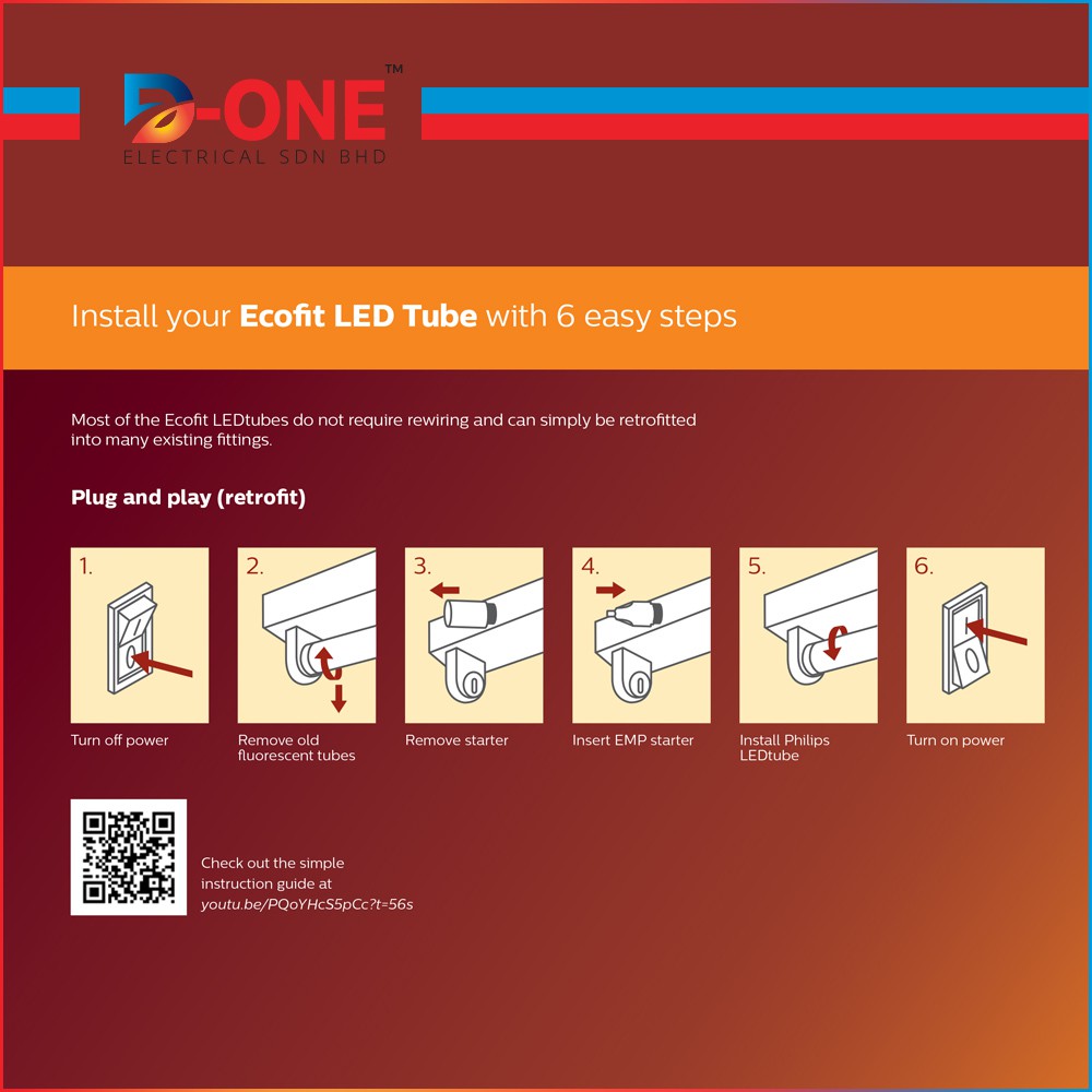 Philips LED Tubes -Ecofit T8 LED Tube (2FT & 4FT) (Industrial Pack)(PHILIPS/OSRAM WIRING IS DIFFERENT FROM OTHER BRAND)
