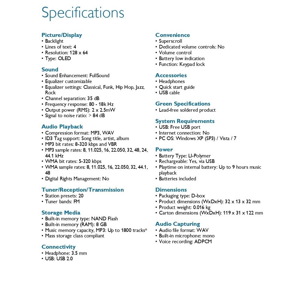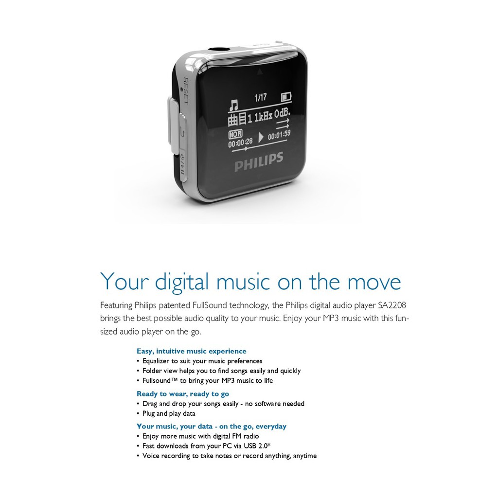 Philips MP3 SA2208 Music Player Sport Walkman with 8GB Memory, FM Radio & Screen Display