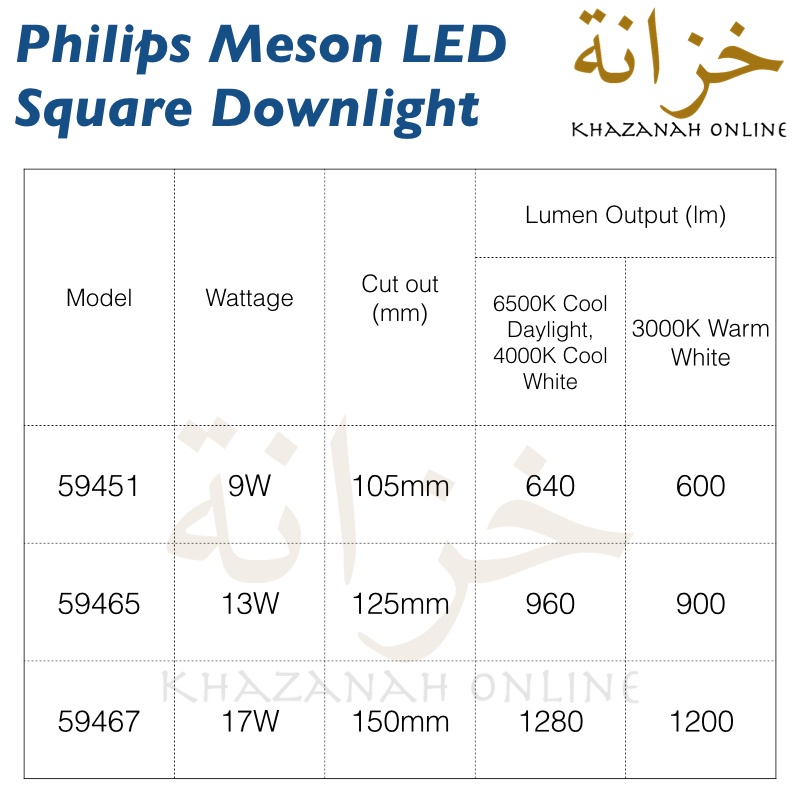 Philips Meson Square LED Downlight 9W / 13W / 17W ( 6500K Cool Daylight / 4000K Cool White / 3000K Warm White )