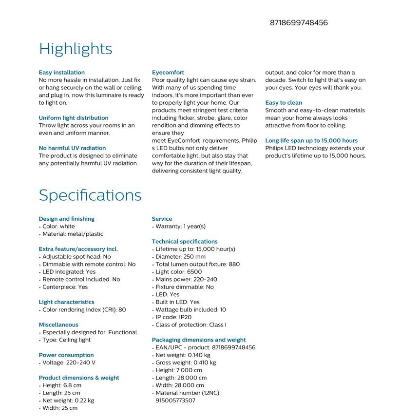 Philips Moire CL200 LED Ceiling Light 10W ( 6500K Cool Daylight / 2700K Warm White )