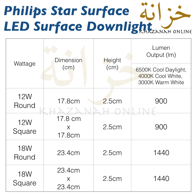 Philips Star Surface LED Surface Downlight | Round / Square | 7" / 9" | 12W / 18W 6500K / 4000K / 3000K