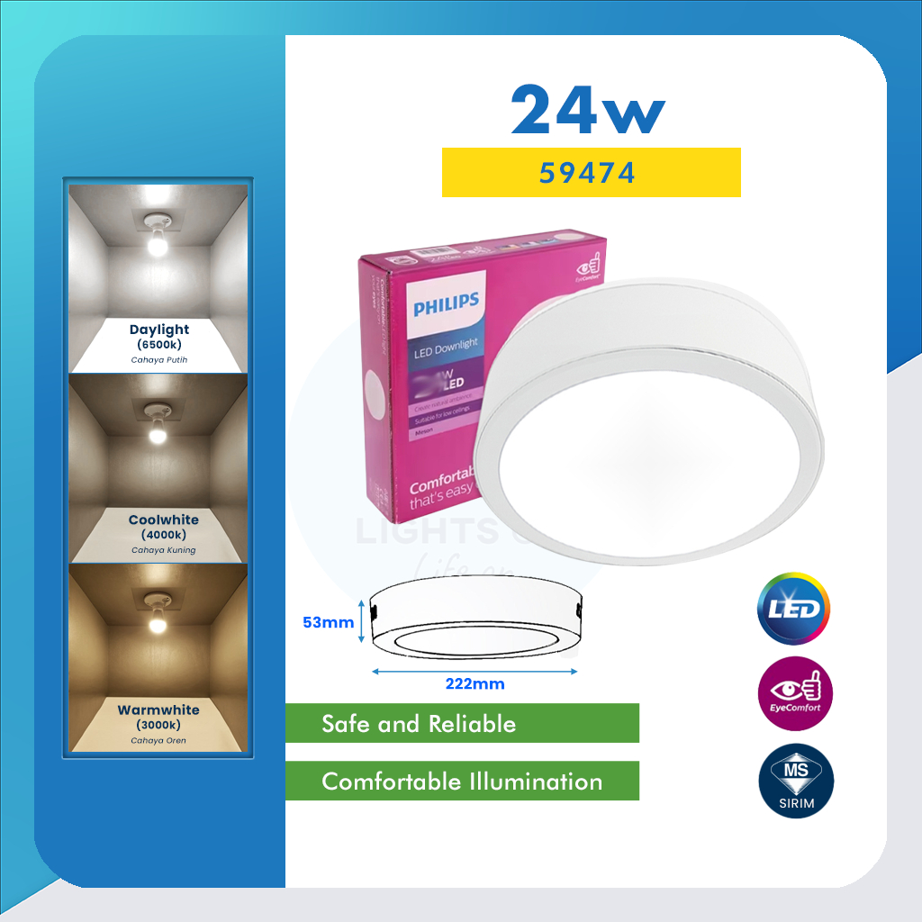 🔥SIRIM🔥PHILIPS MESON 7" 17W | 9" 24W Surface Downlight LED Surface Mounted Panel Light 59472 59474 Lampu Siling