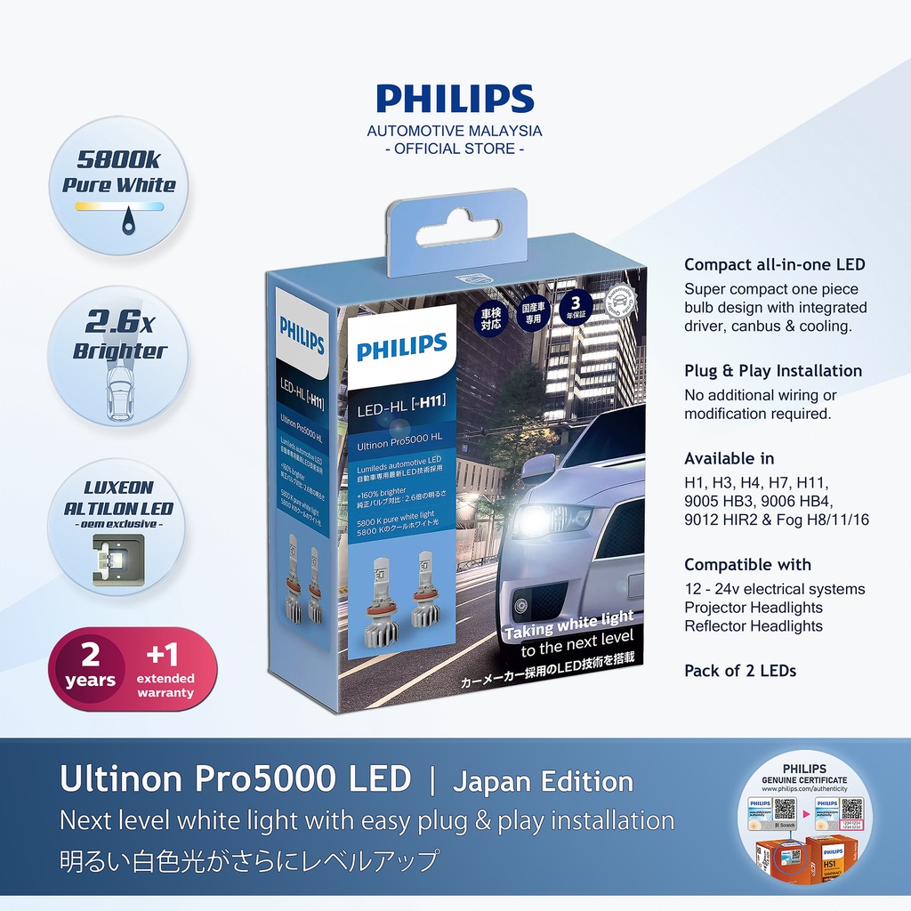 Philips Ultinon Pro5100 / Pro5000 LED Headlight ( +160% More Light | Pack of 2 LEDs )