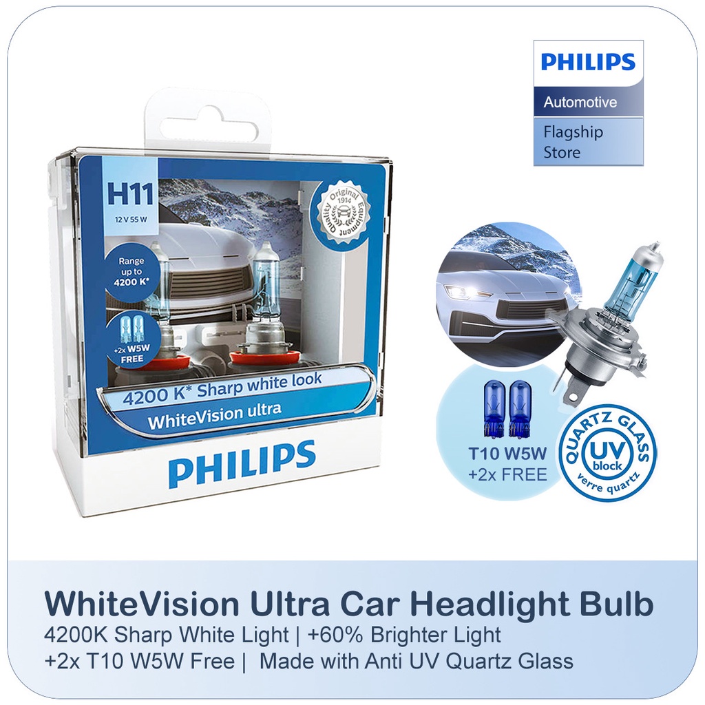 Philips White Vision Ultra Car Headlight Halogen Bulb ( +60% More Light | 4200K Sharp White)