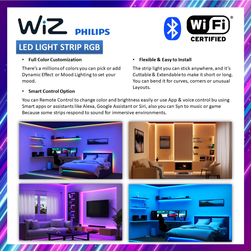Philips Wiz Smart Led STRIP LIGHT 1M Extension / 2M Starter Kit RGB Colour + 3 Color LED Linear Lamp Lampu