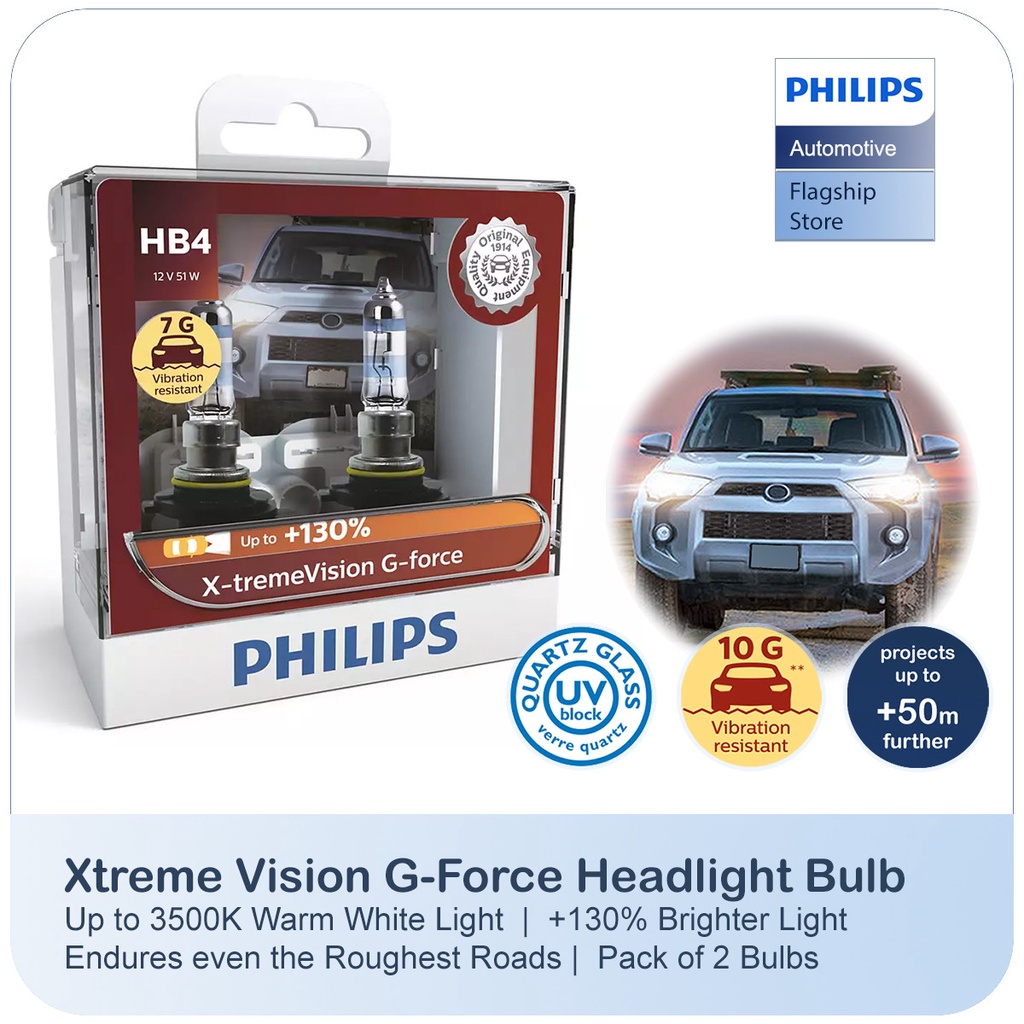 Philips Xtreme Vision G-Force Car Headlight Bulb ( +130% More Light | Vibration Resistance )