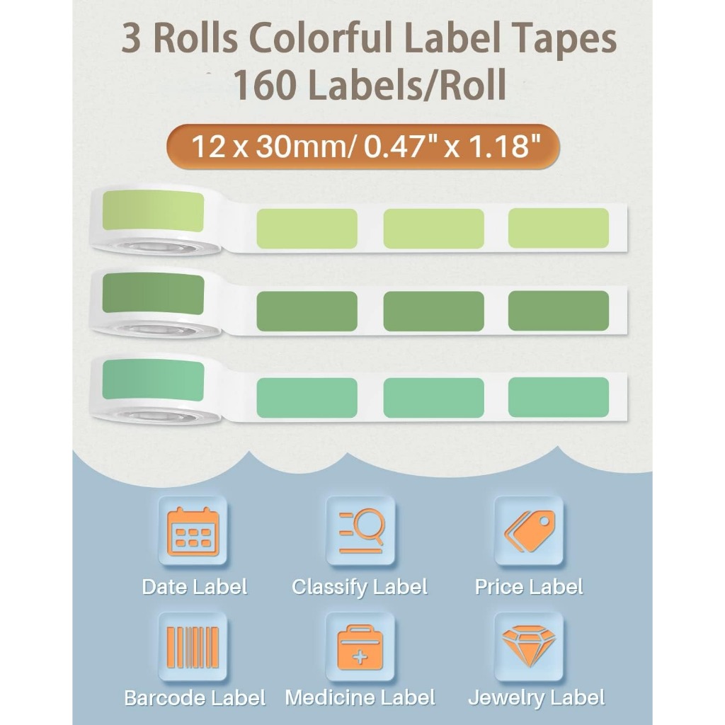 Phomemo 12X30mm Color Label Sticker For D30/Q30/Q31 Printer(3 Rolls)