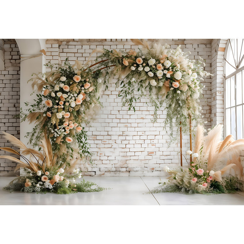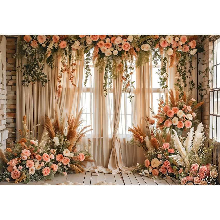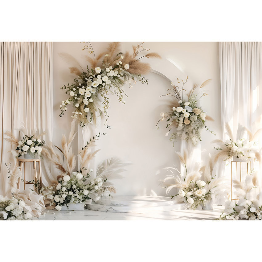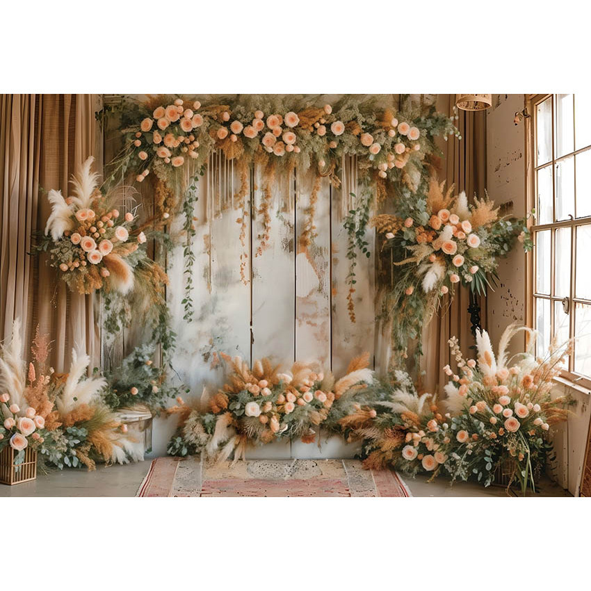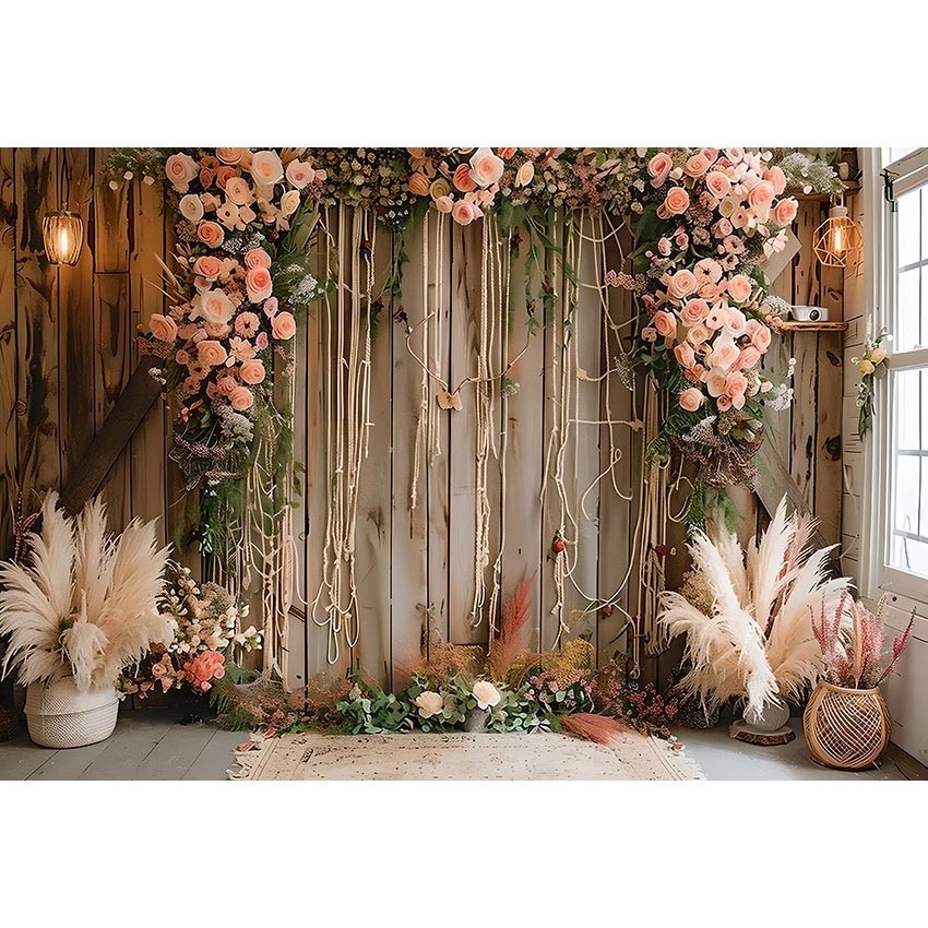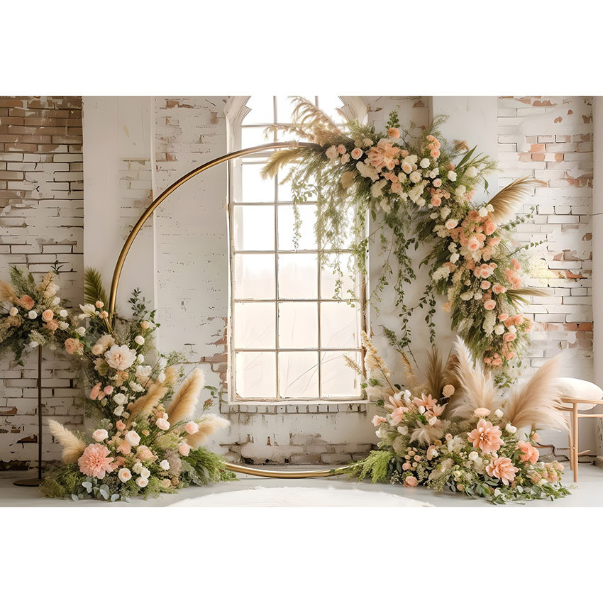 Photography Background Boho Pampas Curtain Wedding Round Ring Pregnant Girl Portrait Grass Decor Backdrop Photocall