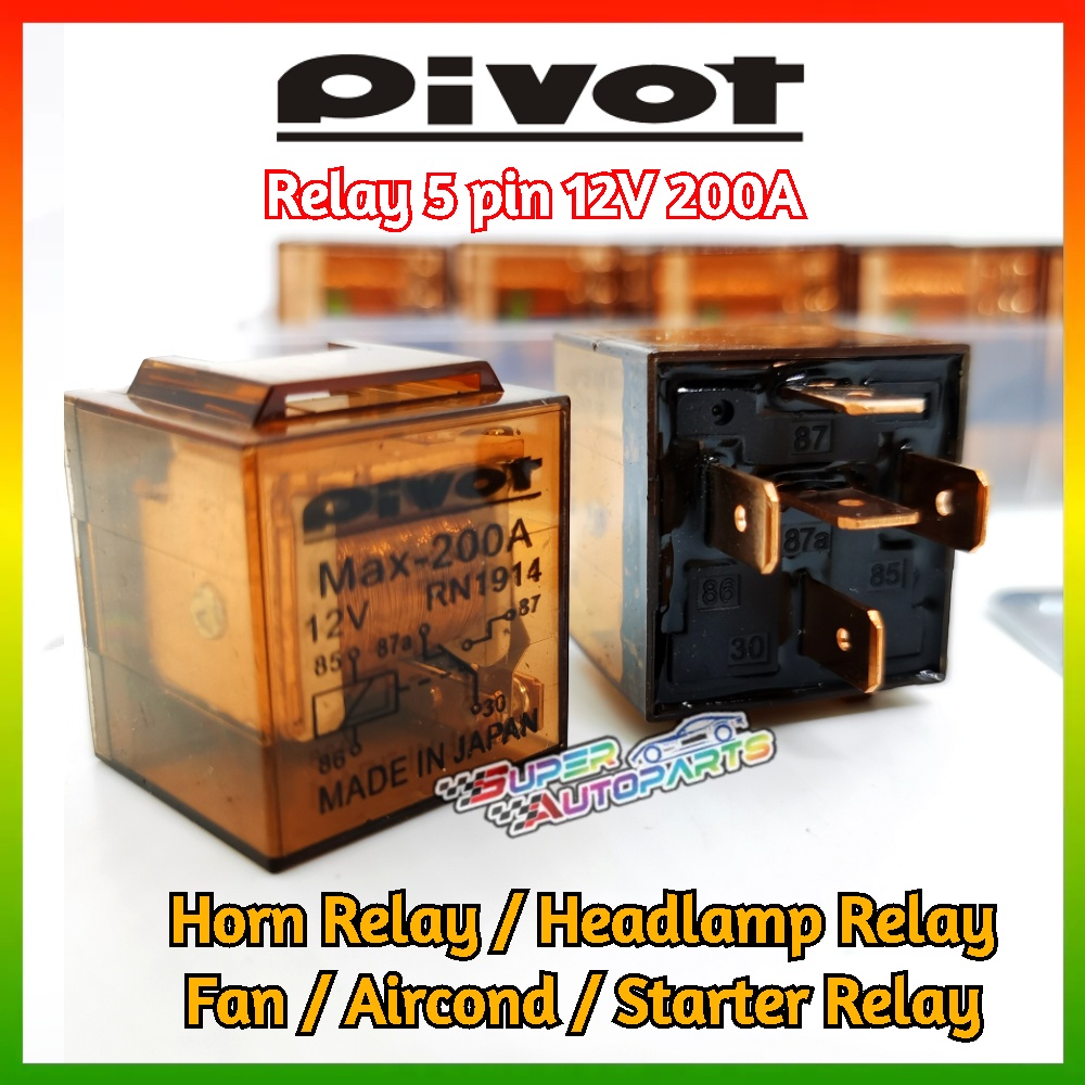 PiVOT Relay 5 pin 12V 200A Horn Relay Headlamp Relay Aircond Relay Fan Relay Starter Relay Spot Light 9509577