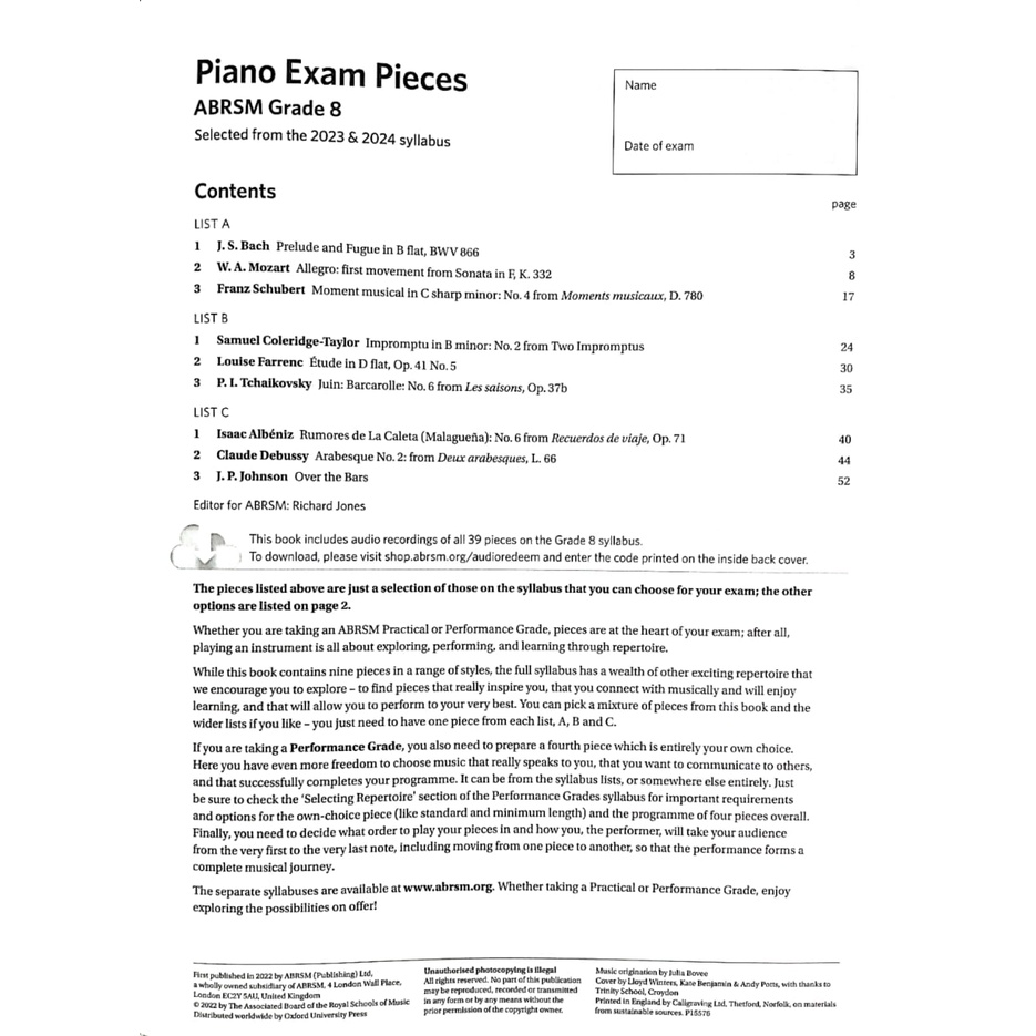Piano Exam Pieces 2023 & 2024, ABRSM Grade 8, with audio New product ABRSM
