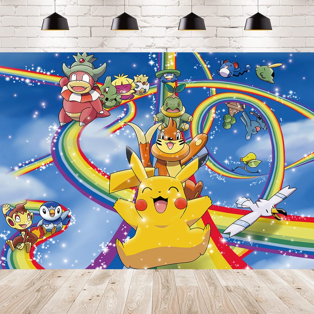 Pikachu Theme Party Backdrop Decor Baby Shower Kids Pokemon Backdrops Photography Backgrounds Decors
