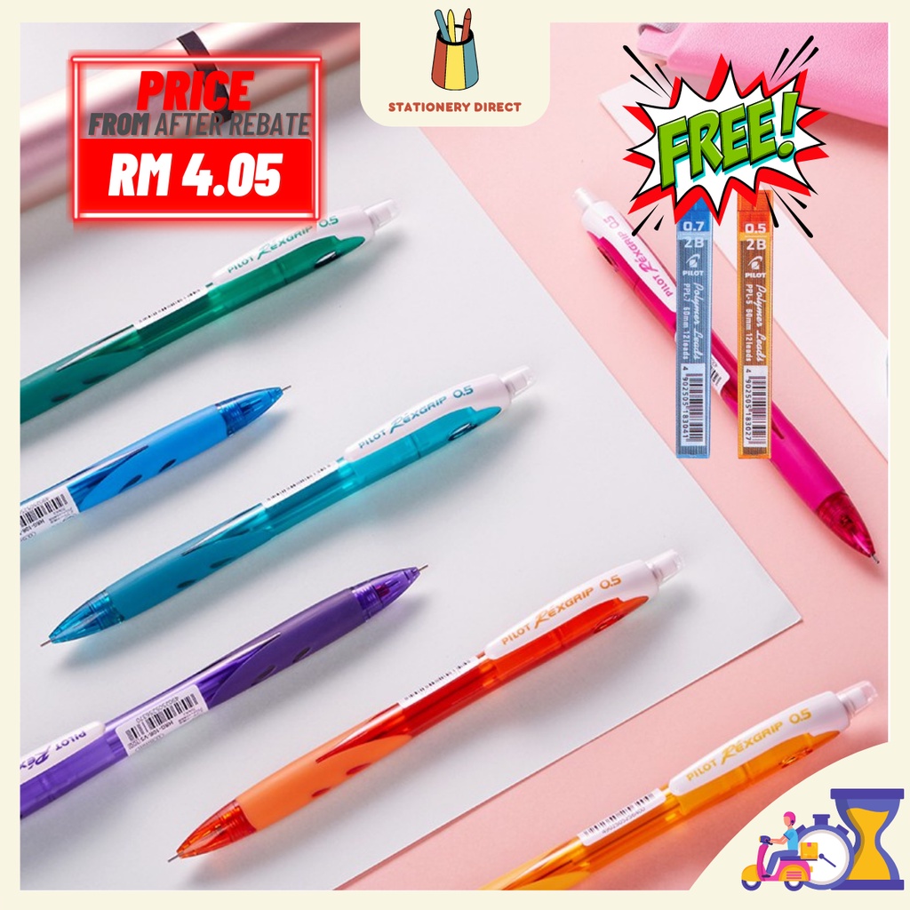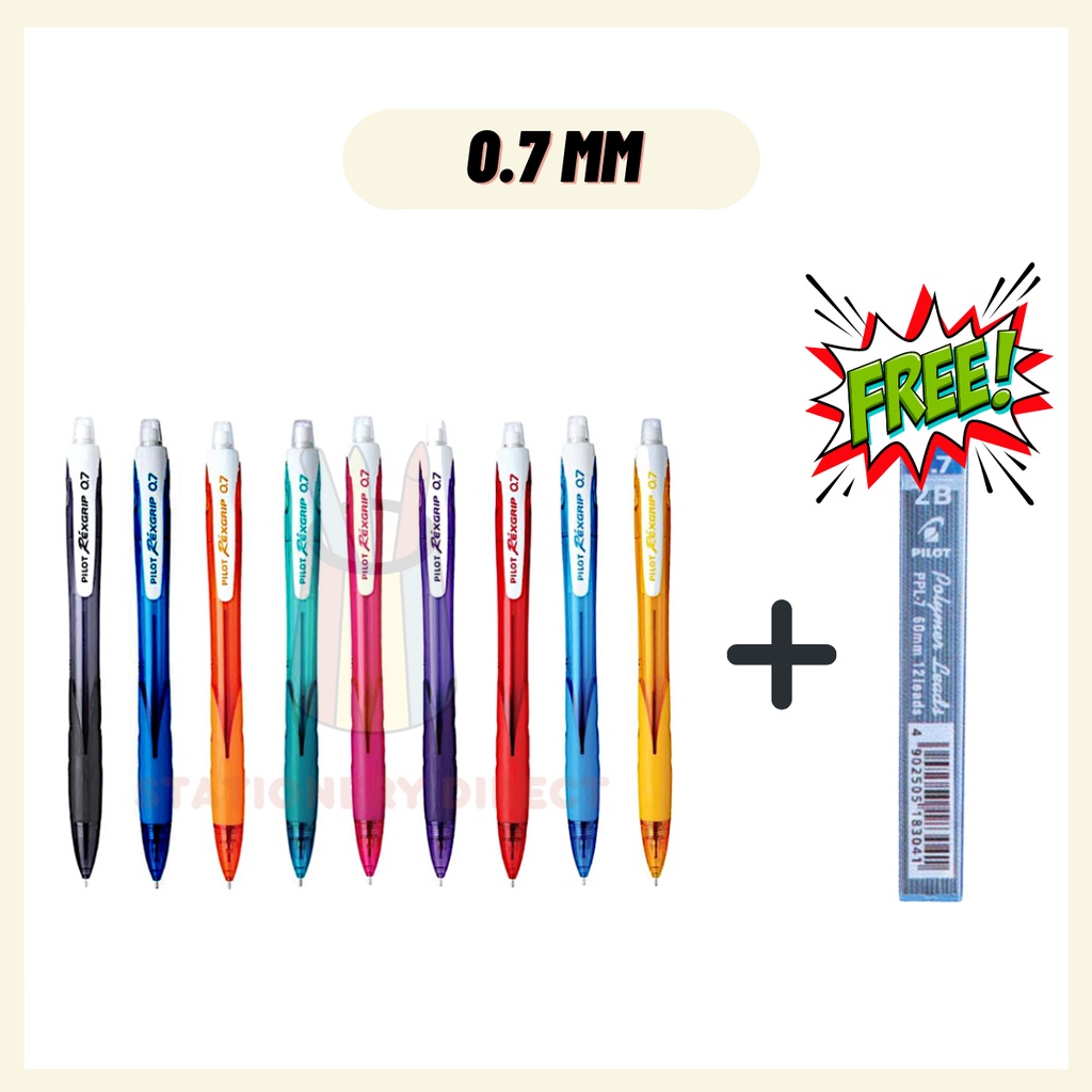 Pilot Rexgrip Mechanical Pencil+Free Pencil Lead Tube/Pensel Tekan 0.5mm/0.7mm - (1'Pack) Ubat Pensel
