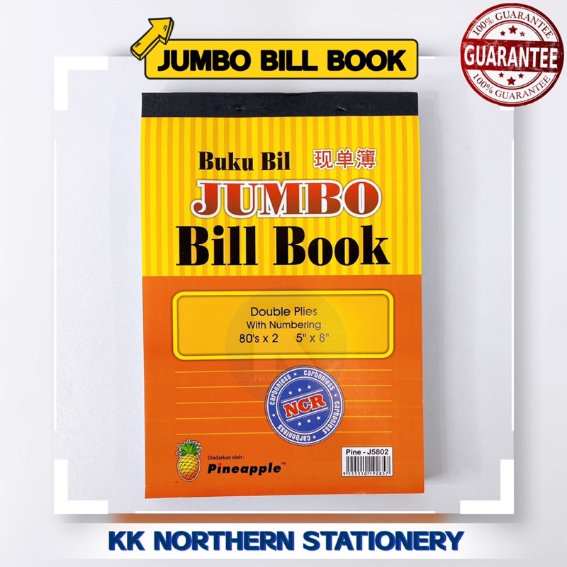 Pineapple Carbonless Jumbo Bill Book Jumbo Mini Bill Book with Numbering 80's x 2ply (3.5"x5")/(5"x8") Resit Book
