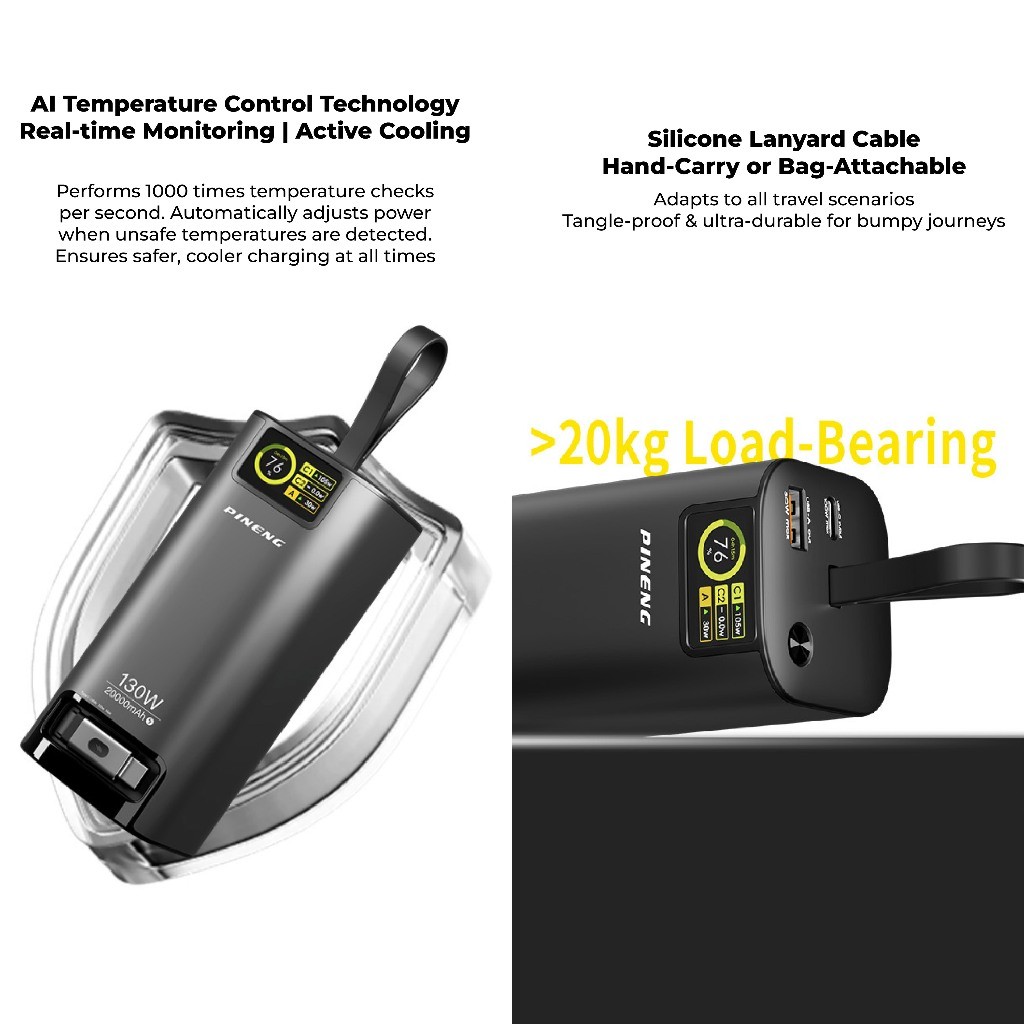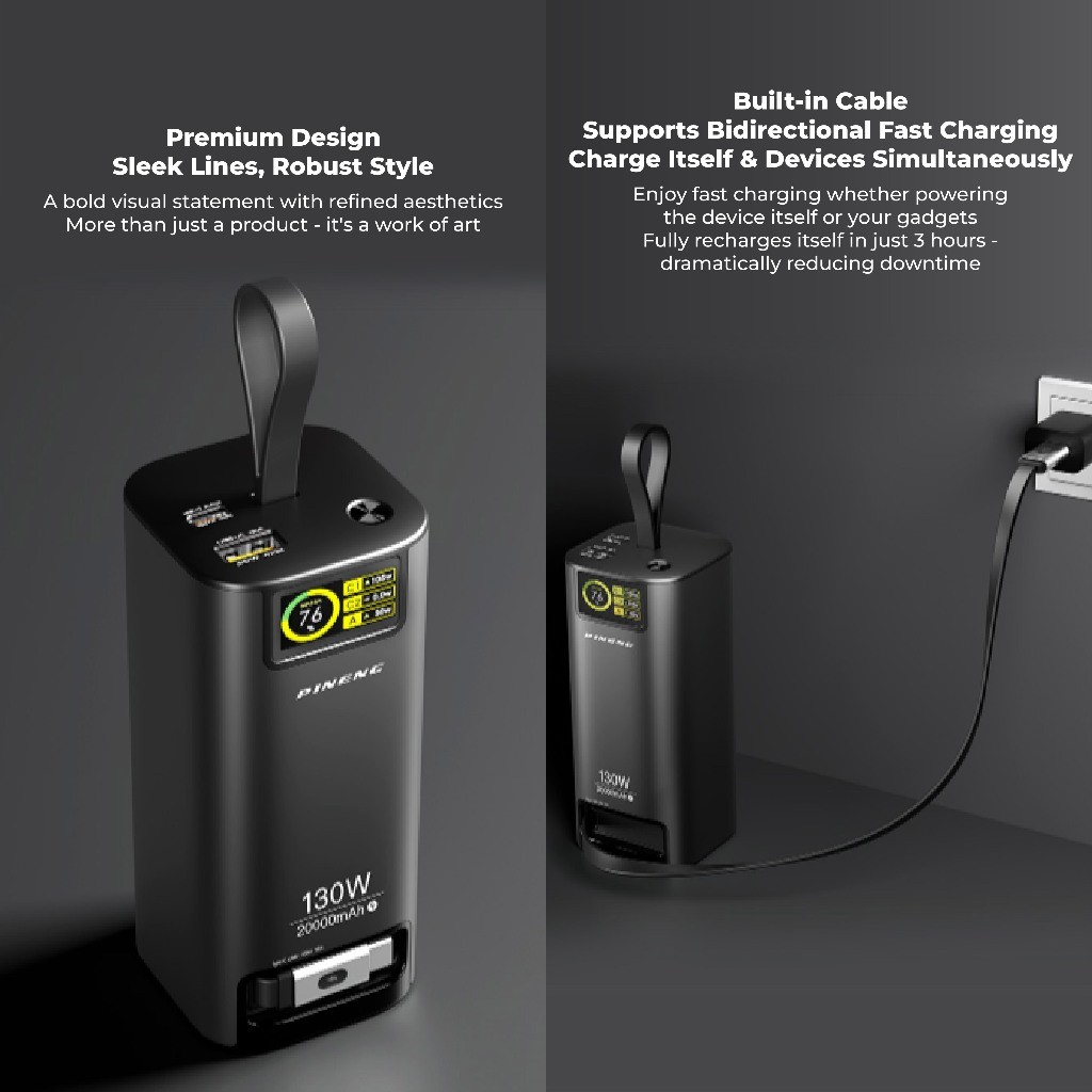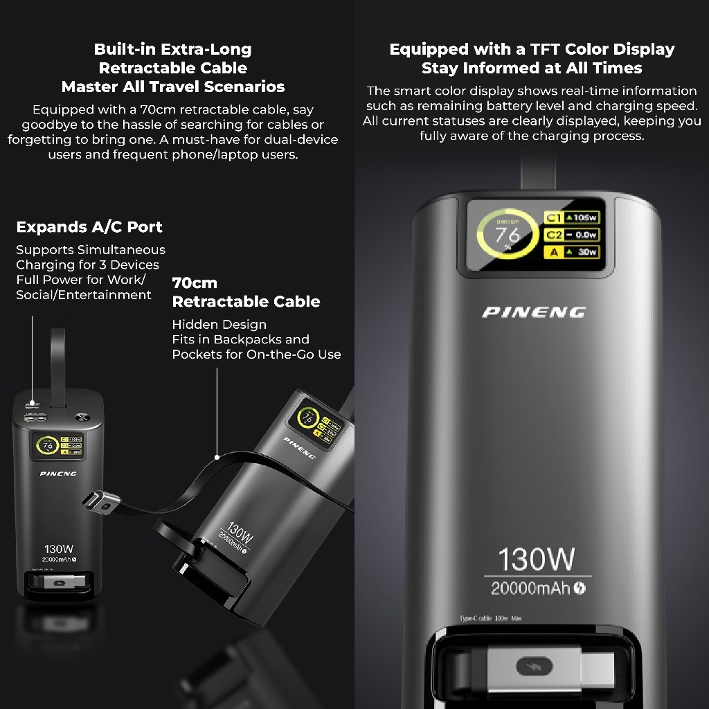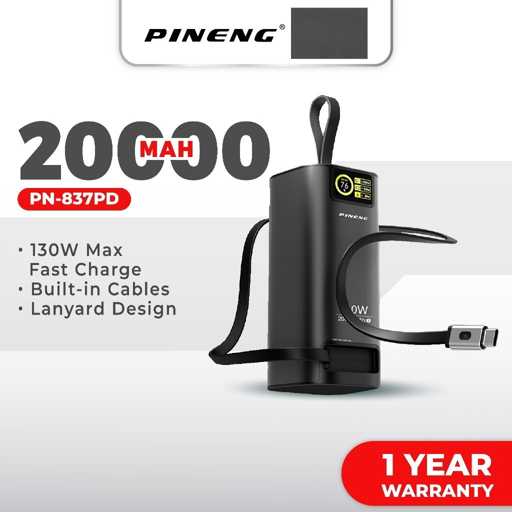 Pineng PN-837PD 20000mAh Power Bank Build-In 70cm Retractable Cable Pineng Powerbank 20000mAh