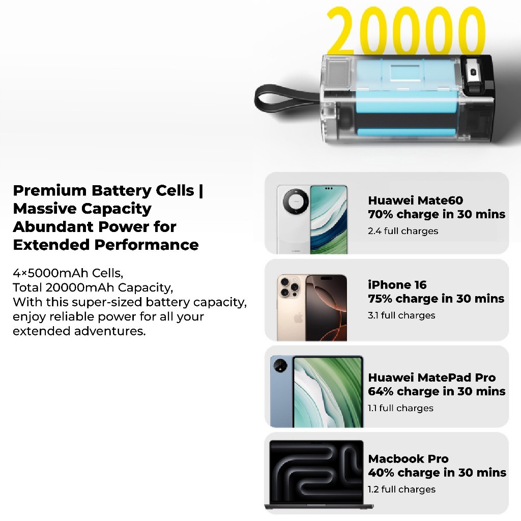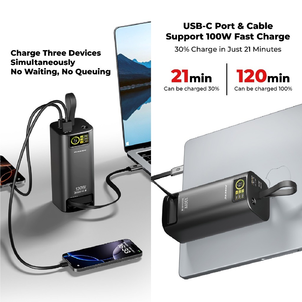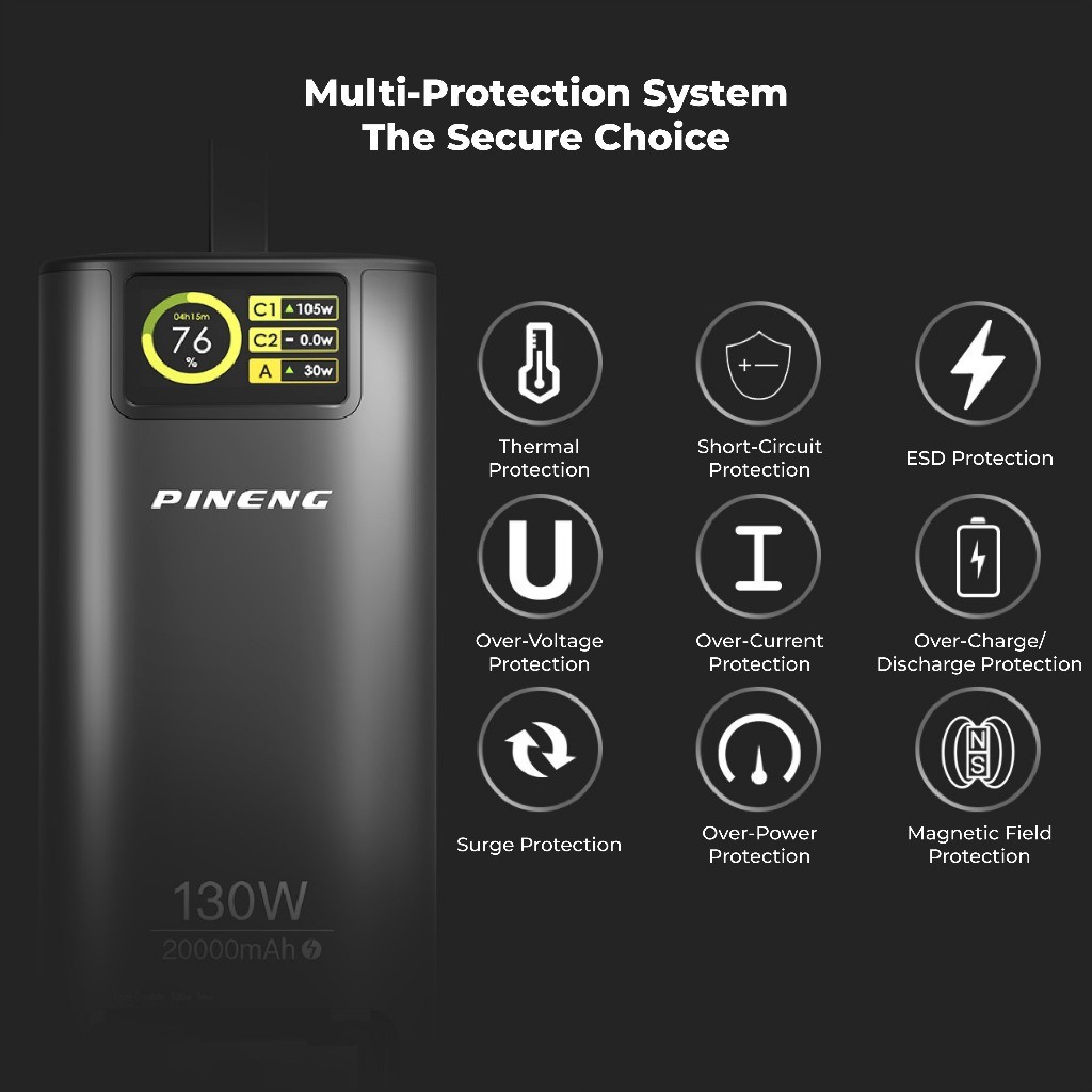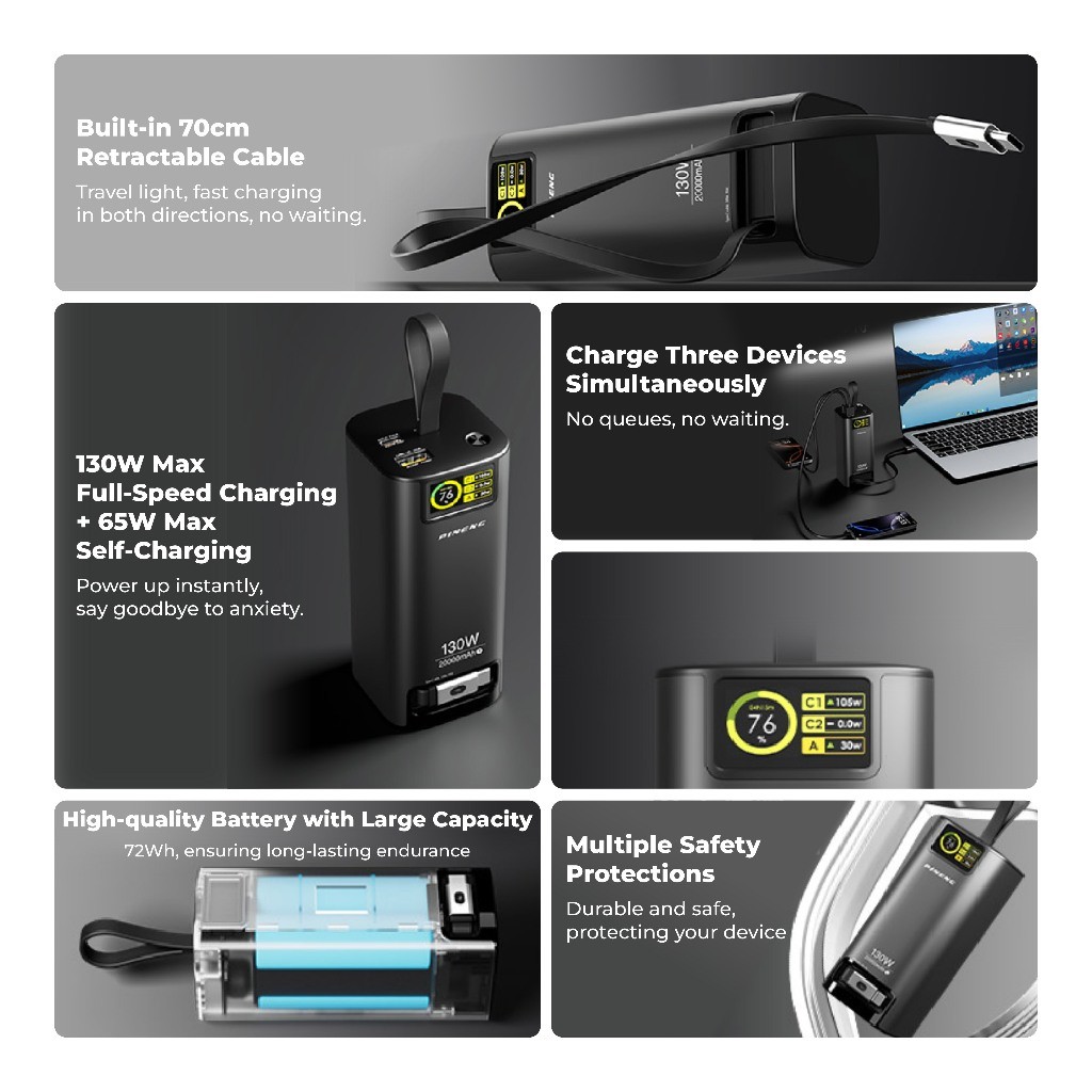 Pineng PN-837PD 20000mAh Power Bank Build-In 70cm Retractable Cable Pineng Powerbank 20000mAh