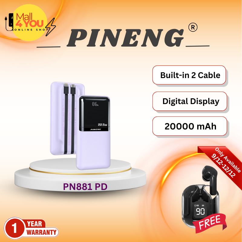 Pineng PN881pd 20K /PN880pd 10K LED Digital Display with Built-In Output Cable Fruit & Type C 22.5W 20000mah Powerbank