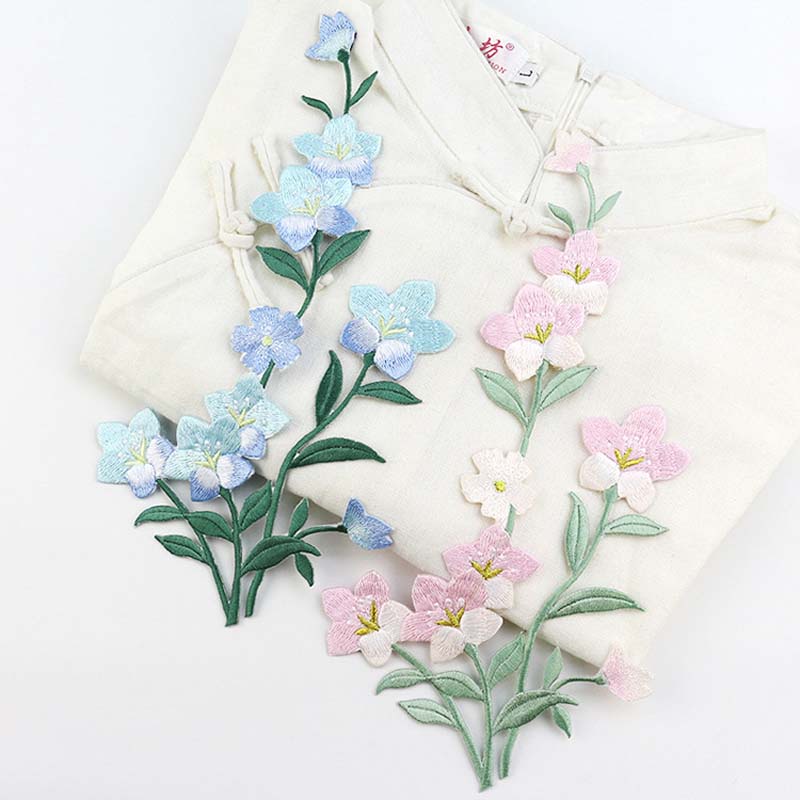 Pink Blue Flower Patch Iron on Applique Floral Patch for Clothes Iron to Stick DIY Coat Jeans Accessories