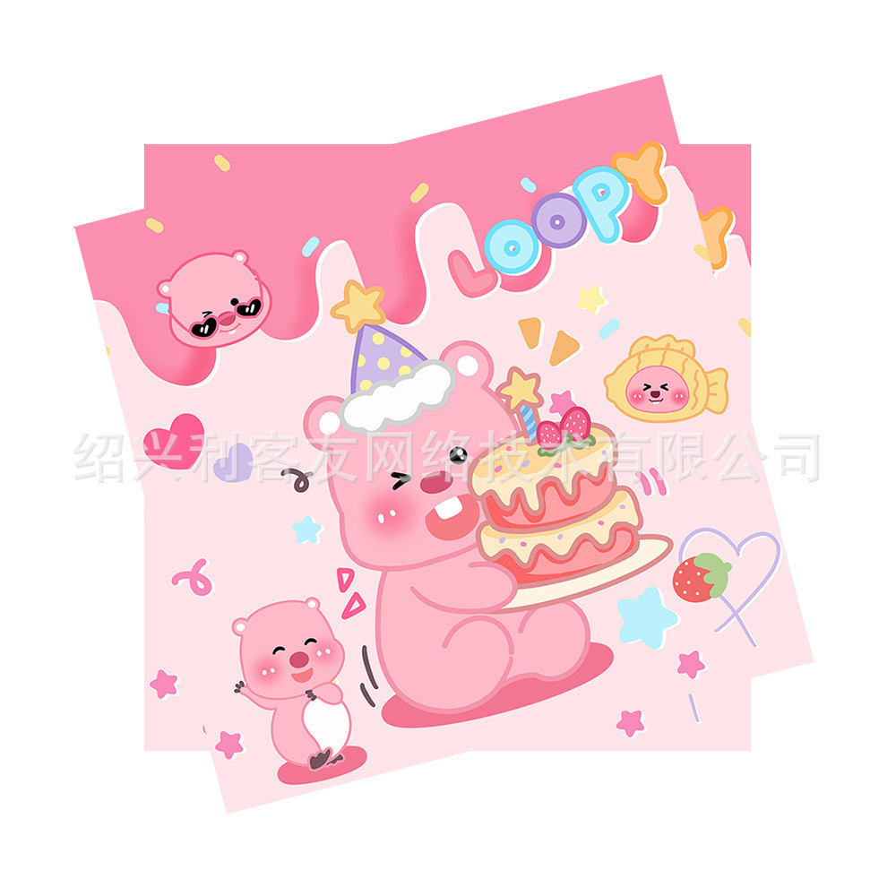 Pink Loopy cartoon themed party Tableware Little Beaver Pororo Children's Birthday Party Decoration Cute Paper Plate Cup Banner Table Cloth Supplies Set