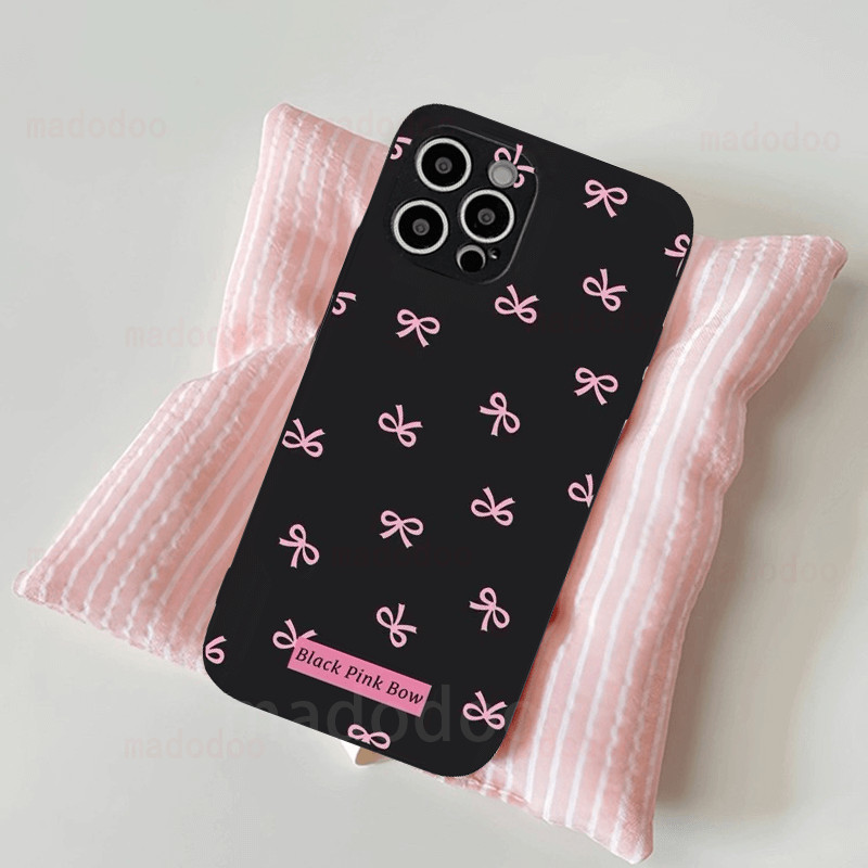 Pink Polka Dot Bow Ribbon Casing For Samsung Galaxy M51 M53 M52 M33 M23 M11 A15 A71 4G 5G A05 A05S A42 A51 A11 A21S A31 A01 A70 A50 A50S A30S A30 A10 A20 Note 10 Straight Edge Fine Hole Shockproof Soft Phone Case 1MDD 67