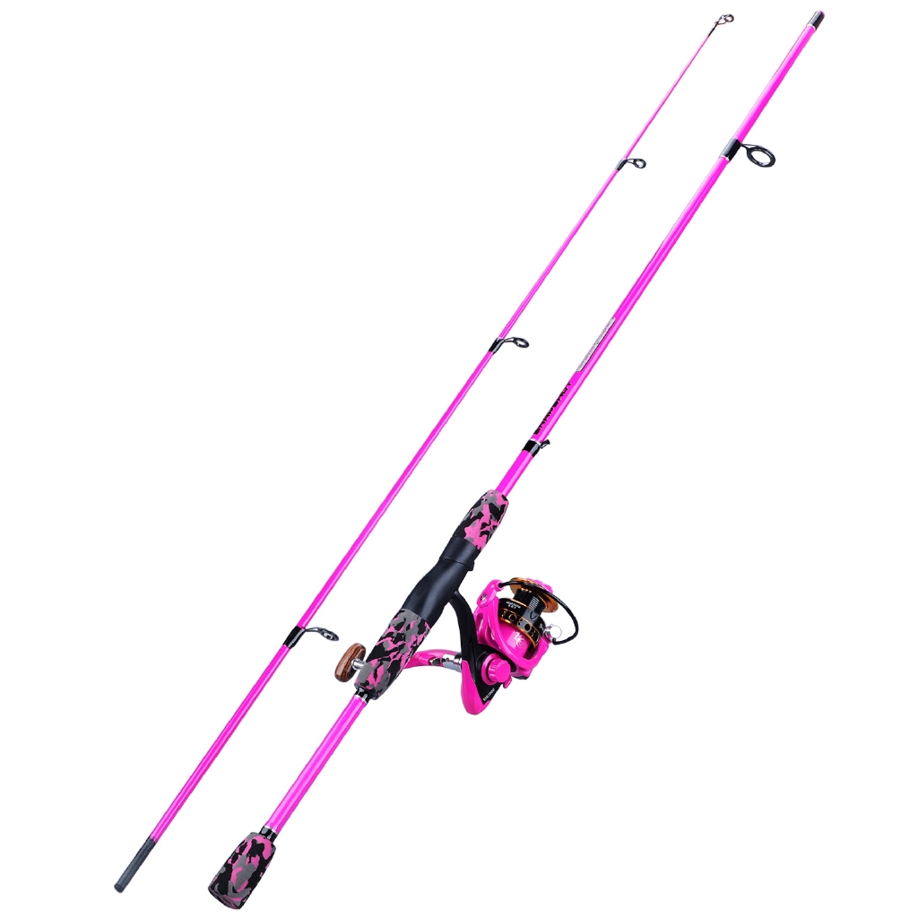 Pink Yellow Spinning Fishing Rod Spinning Reel Set M Power Line Weight 6-15lb (1.8m)