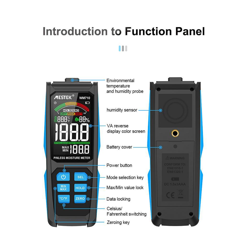 Pinless Moisture Meter Inductive Large Screen Timber Damp Detector Digital/Analog Dual Display Ambient Humidity Timber Detect