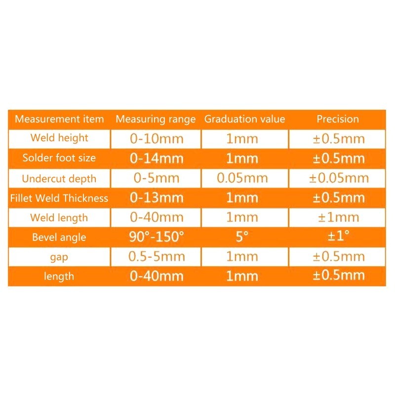 Pipe Welding Gauge Welding Inspection Ruler 0-40mm Stainless Steel 0.5-5mm Crack