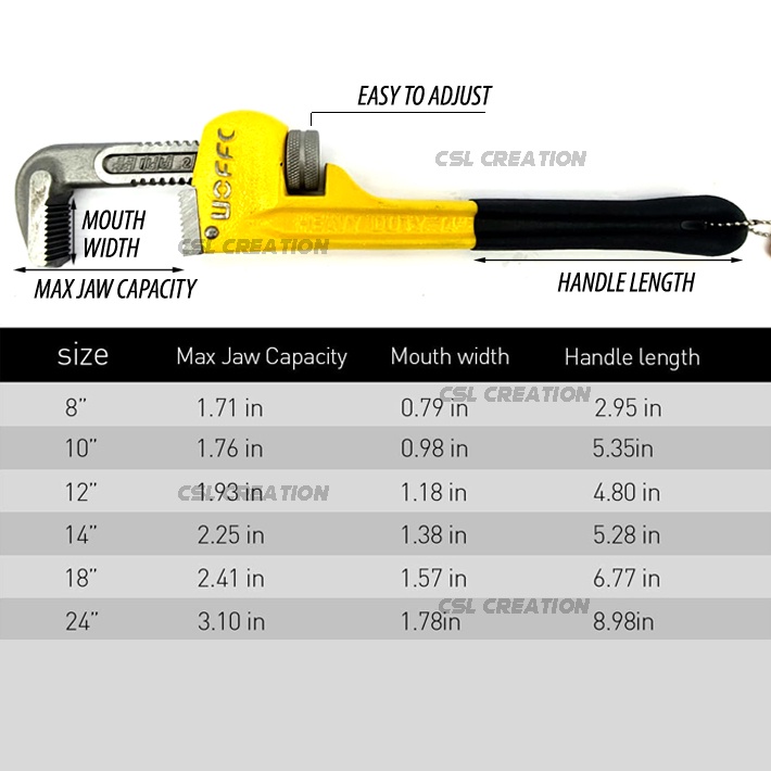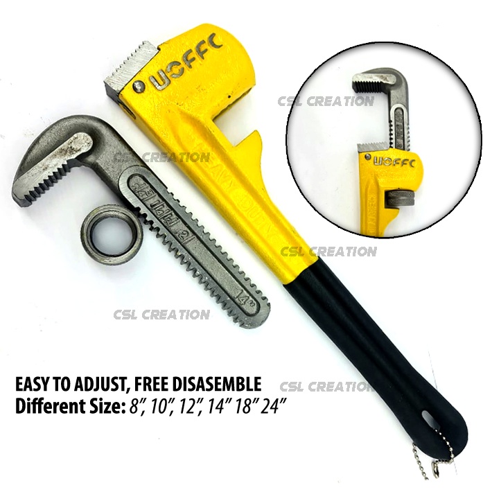 Pipe Wrench UOFFC Heavy Duty Pipe Wrench Adjustable Spanner Wrench Plumber Plier Wrench / Sepana Paip